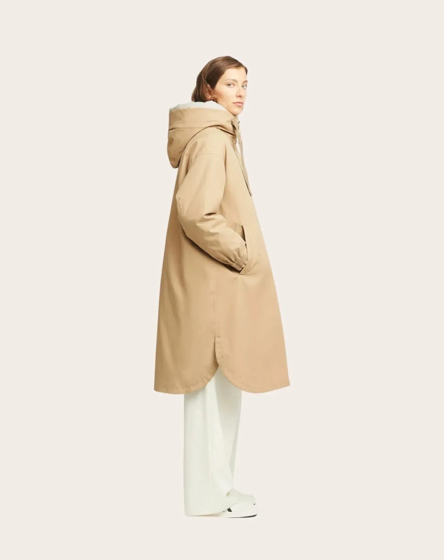 - Si vous ne deviez choisir qu’un seul manteau pour les saisons à venir, ce serait celui-ci ! Il réunit polyvalence, fonctionnalité et élégance intemporelle dans un design soigneusement pensé. Sa veste intérieure amovible garnie de PrimaLoft® en fait un véritable tout-terrain : légère en été, chaude en hiver – et idéale pour toutes les saisons intermédiaires. Sa silhouette féminine et minimaliste, dotée d’un ourlet arrondi, peut être portée ouverte en ligne A moderne ou ajustée à l’aide d’un cordon au dos. Malgré son esthétique épurée, ce modèle surprend par sa fonctionnalité complète : imperméable, coupe-vent, respirant – et pourtant si doux qu’on le sent à peine. Disponible en deux matières au caractère affirmé : le ‘Soft Canvas’, doux et durable, inspiré de la nature, et le tissu technique ‘Nano Shell’, élégant et soyeux au toucher. Toute l’année, un seul manteau – résolument polyvalent.