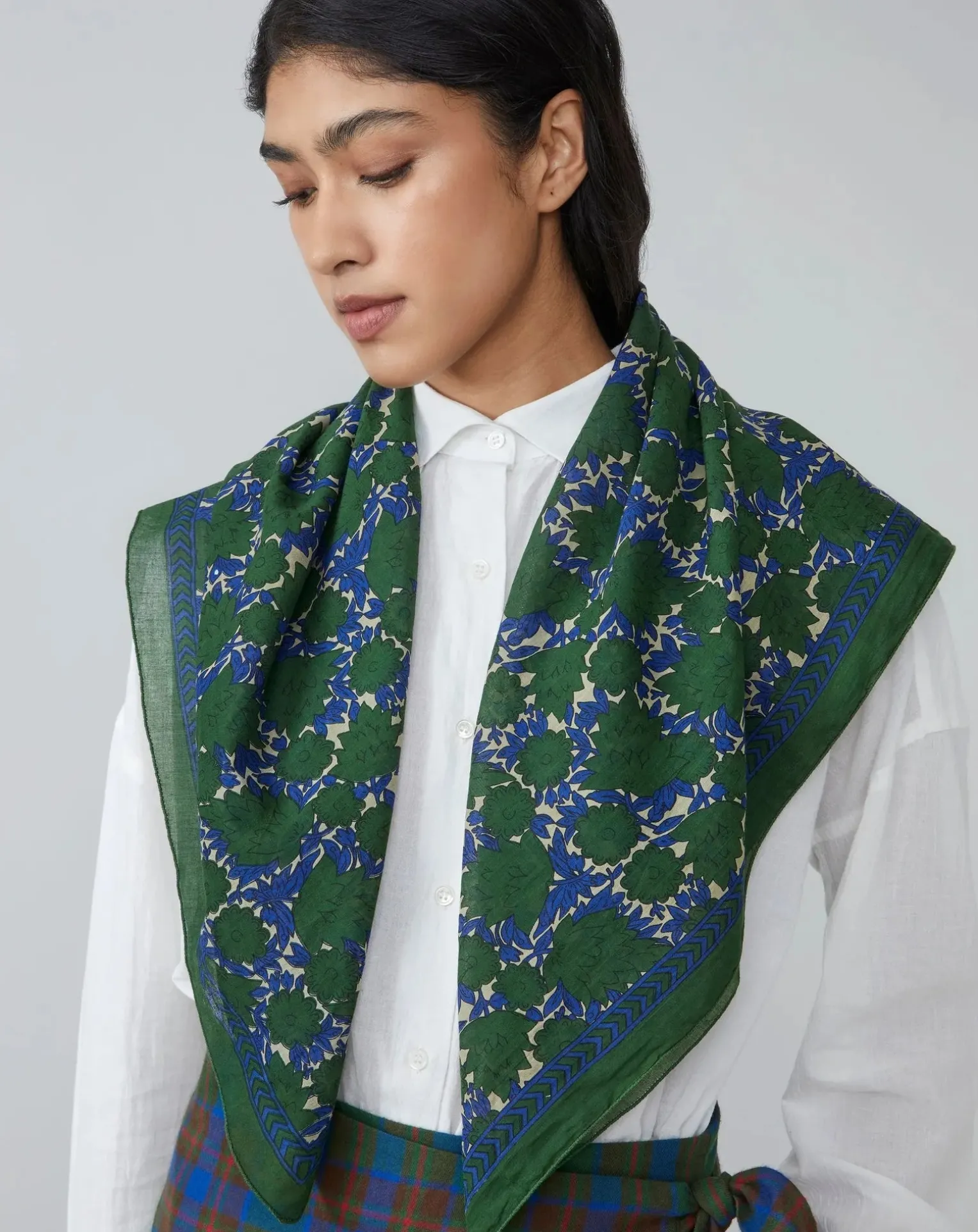 - Pièce intemporelle du vestiaire Moismont, le foulard Amber N°680 se réinvente chaque saison dans de nouveaux coloris. Confectionné en 100 % coton, il déploie un imprimé fleuri délicat qui incarne fraîcheur et légèreté.Son grand format 90 x 90 cm offre de multiples possibilités de port, tandis que sa bordure en chevrons et la broderie discrète du logo Moismont soulignent son élégance raffinée.Un accessoire versatile et lumineux, parfait pour insuffler une touche de douceur colorée à vos silhouettes.