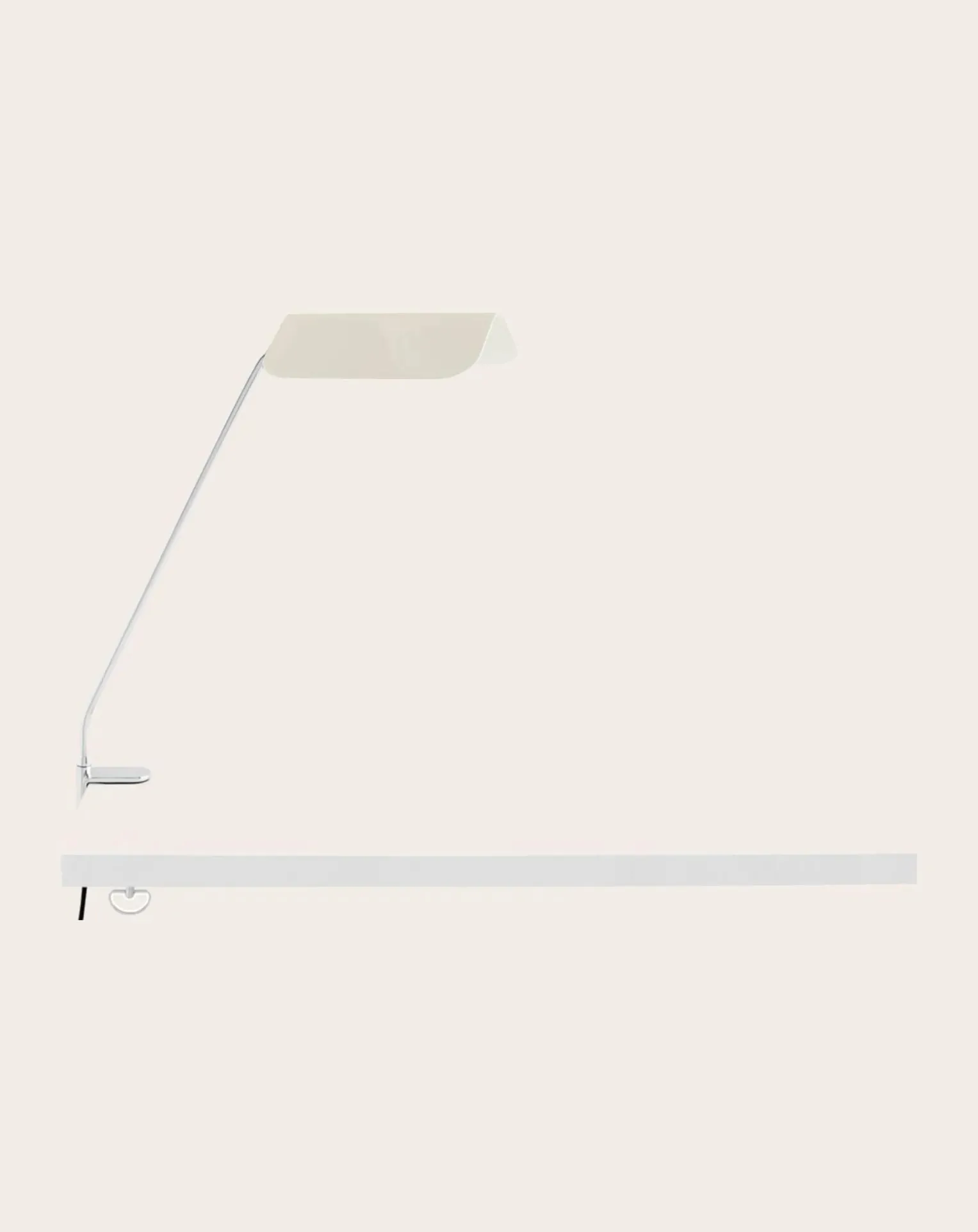 Cette série de lampes s’inspire de la fameuse Banker’s Light. Le designer leur donne ici une touche contemporaine avec des abat-jour en forme de toits pointus et une base chromée minimaliste. Le clip réglable permet de fixer la lampe sur une grande variété de surfaces verticales et horizontales et l’abat-jour, qui peut pivoter à 360°, permet d’orienter la lumière en fonction de vos besoins.