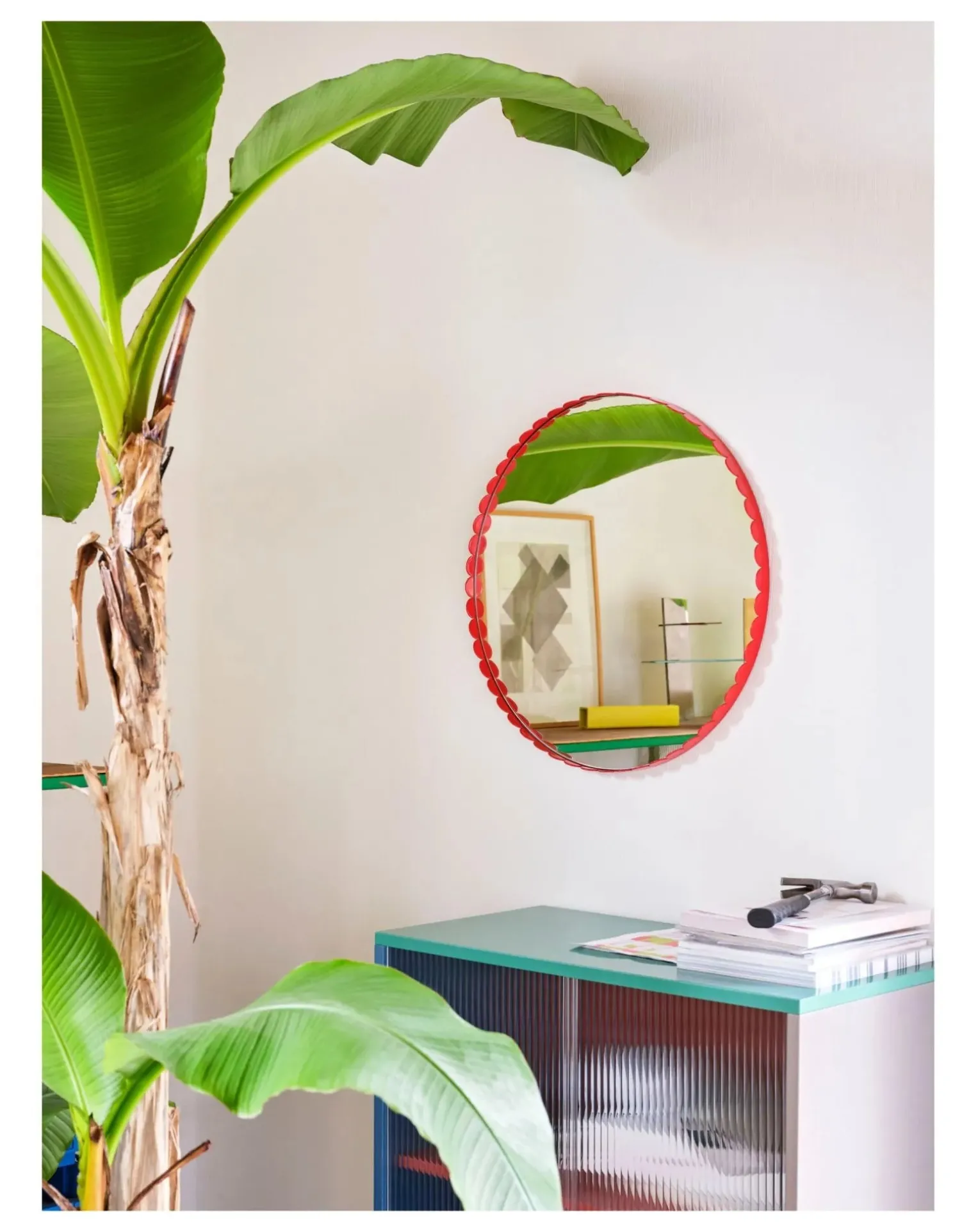 Les miroirs Arcs Mirror sont formés d’une chaîne unifiée d’arcs verticaux qui entourent le miroir pour créer un bord festonné élégant. Sa variété de tailles et de formes le rend adapté à toutes les pièces et à toutes les utilisations.