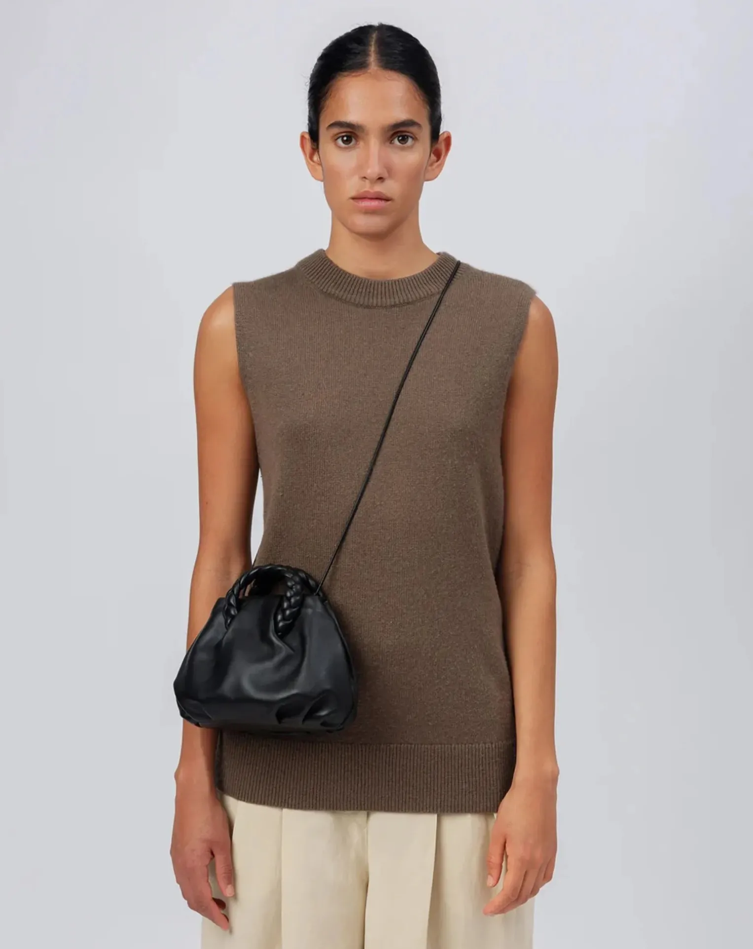 - Fourre-tout en cuir de taille moyenne avec poignées en cuir tressé, en agneau souple et brillant