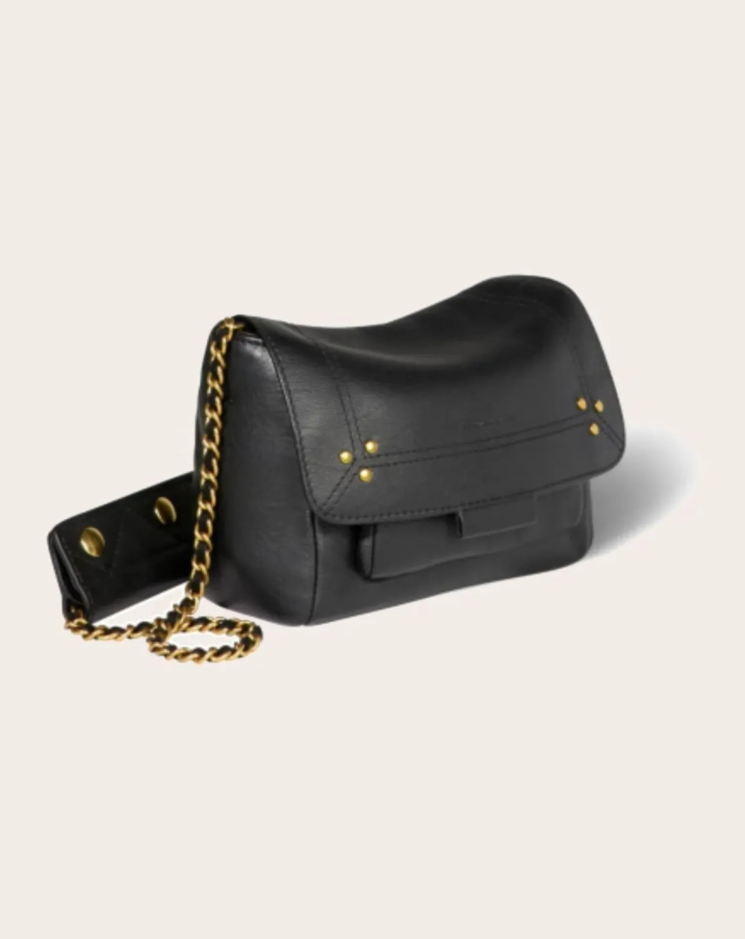 - Mini sac en cuir, porté épaule ou croisé. Bandoulière chaîne et cuir, amovible et ajustable. Rabat avec fermeture aimantée.