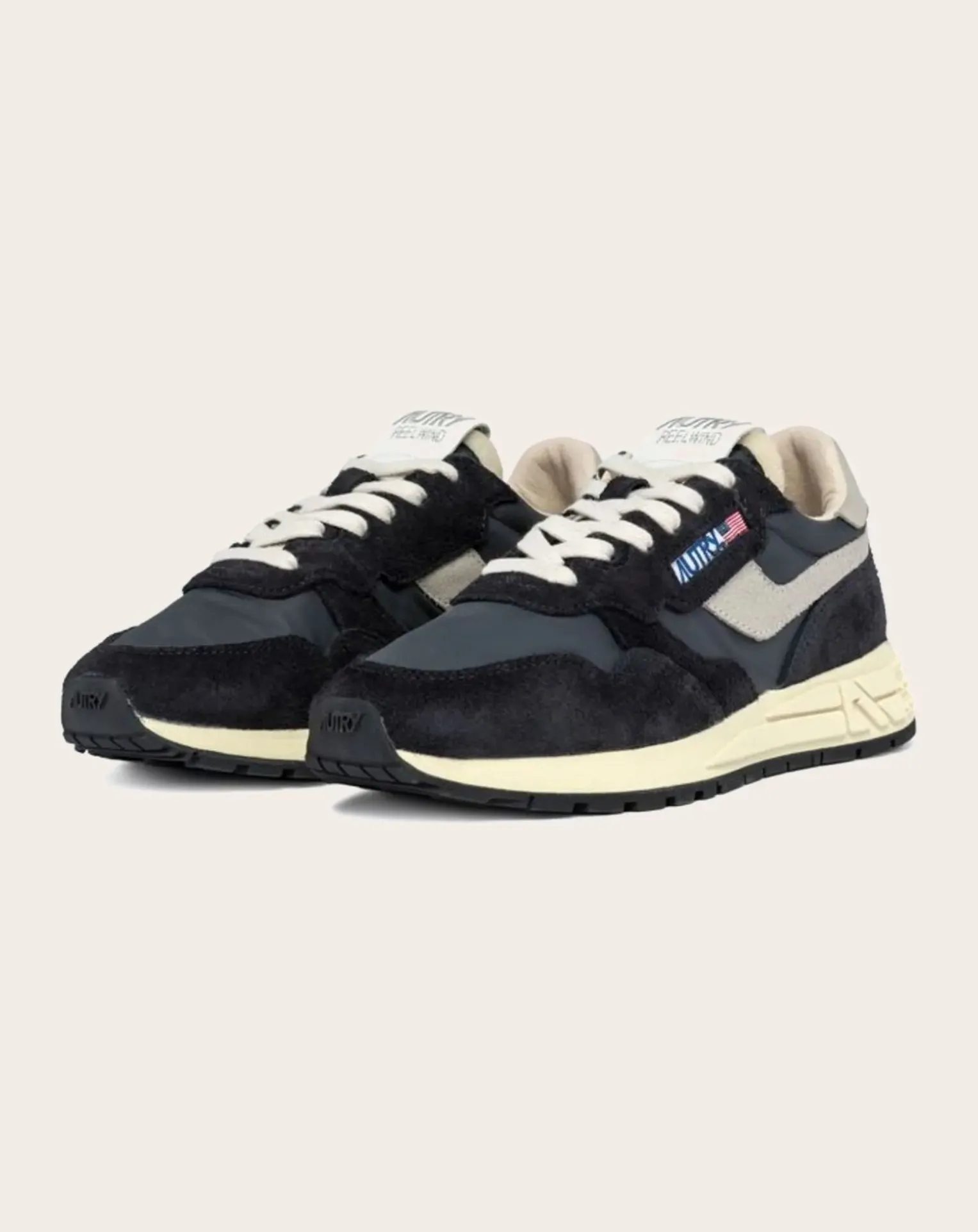 - Innovante, légère et extrêmement flexible, Reelwind est la sneaker Autry inspirée du monde de la course à pied. Le modèle pour femme est composé d’un mélange de daim et de nylon noir avec un patch en cuir blanc sur les côtés.Conçu pour un style de vie dynamique, il présente une silhouette élégante et une construction performante qui offre une liberté de mouvement maximale. La semelle en caoutchouc avec bande de roulement en relief est personnalisée avec la flèche A qui réinterprète le logo de manière graphique et moderne.