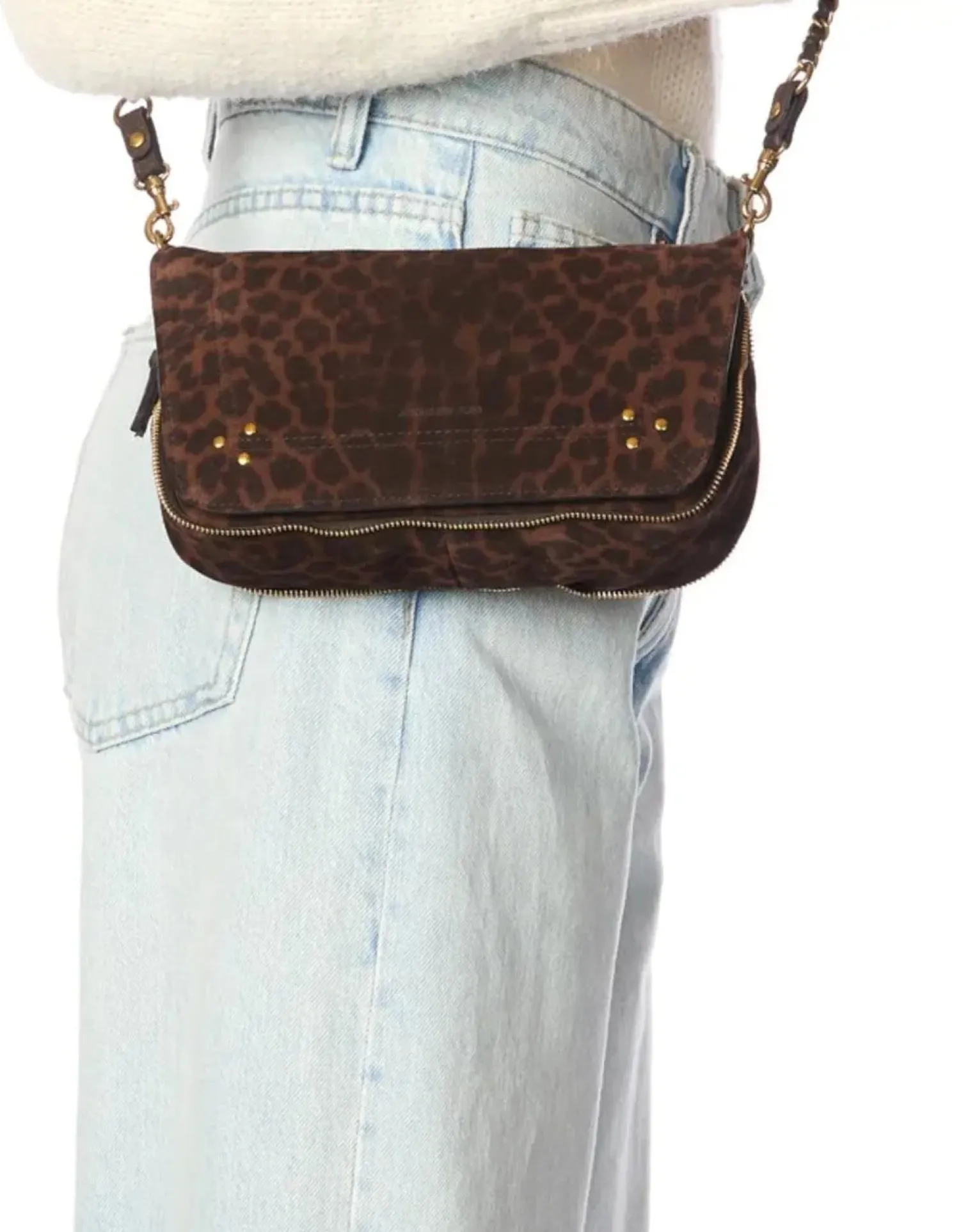 - Bandoulière amovible en chaîne tressée de cuir mesurant 105 cm. Fermeture par un rabat en cuir aimanté. Sac organisé en un grand compartiment.