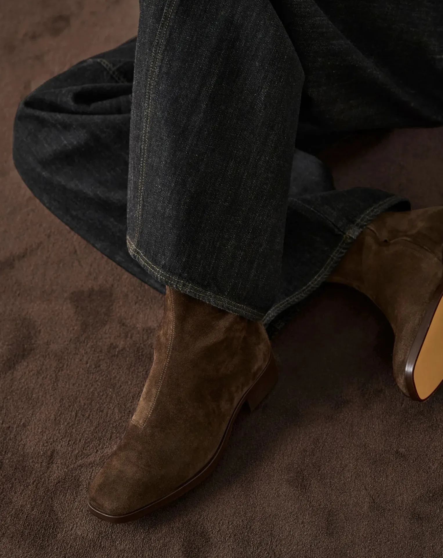 Bottines zippées en croute de cuir