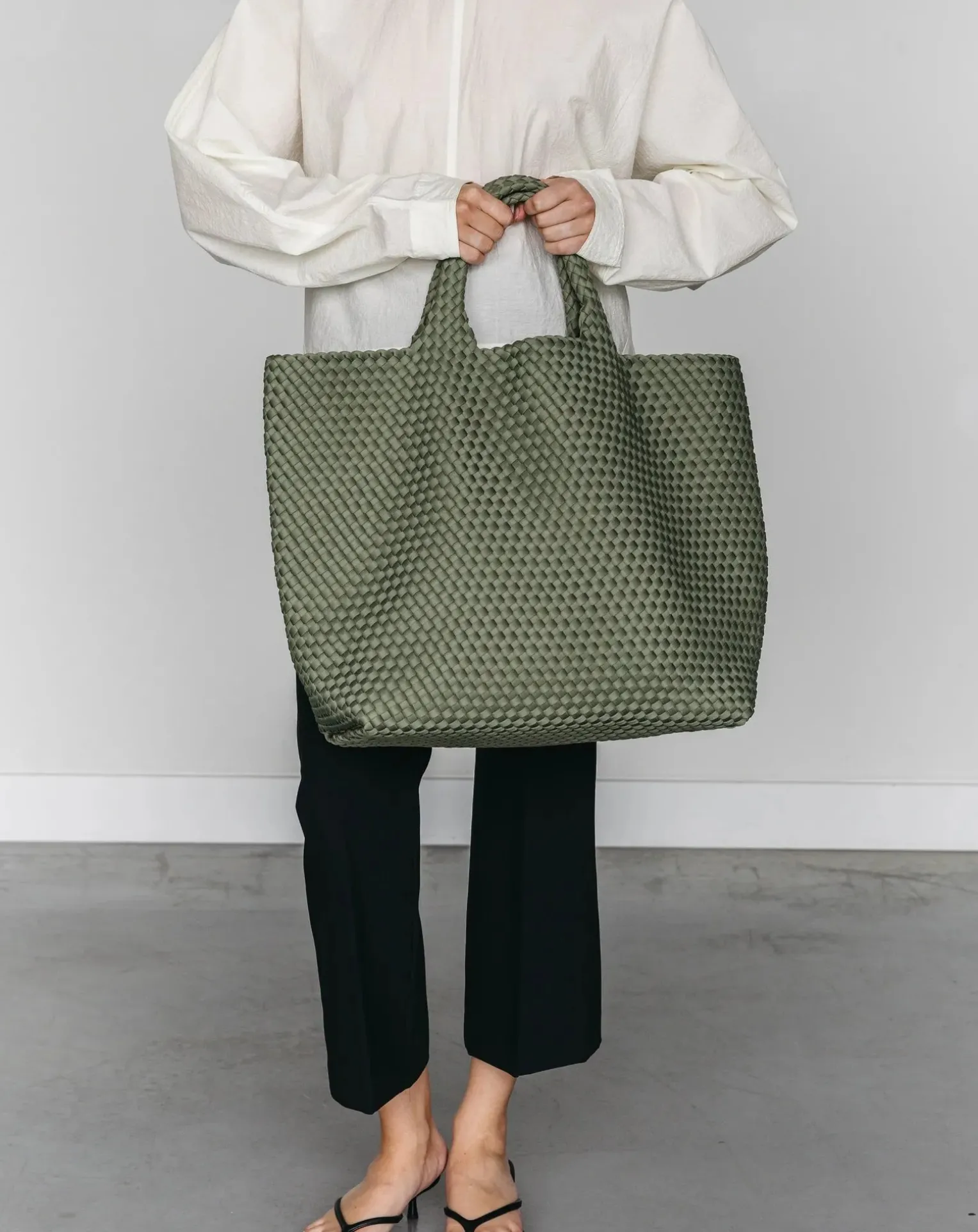 - Spacieux et élégant, le sac Marrea Extra Large est conçu pour ceux qui ont besoin d’espace supplémentaire sans faire de compromis sur l’élégance. Tissé à la main en néoprène de haute qualité, ce sac est léger, souple et facile à nettoyer, ce qui en fait le choix idéal pour les voyages, les journées à la plage et les escapades du week-end. Comme une douce brise qui se faufile entre les oliviers, Dark Oliva vous rappelle les après-midi de détente entourés de la beauté de la nature. C’est une couleur intemporelle qui associe l’excitation de la vie urbaine à la tranquillité de la plage et de la nature. Avec son vert profond, Dark Oliva ajoute une touche de sophistication à votre look tout en le gardant naturel et frais.