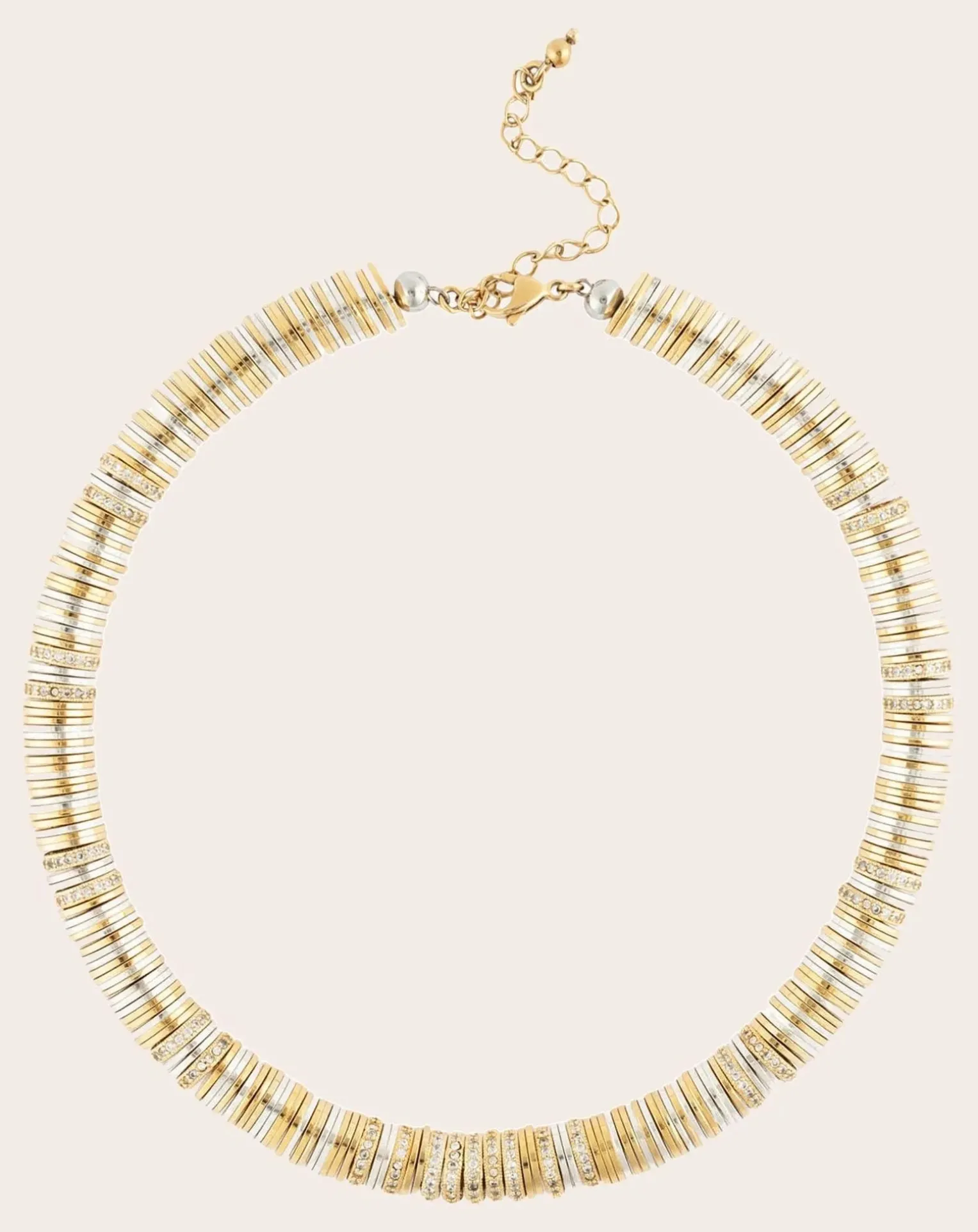 - Les colliers à rondelles sont munis d’une chaîne d’extension de 6 cm.