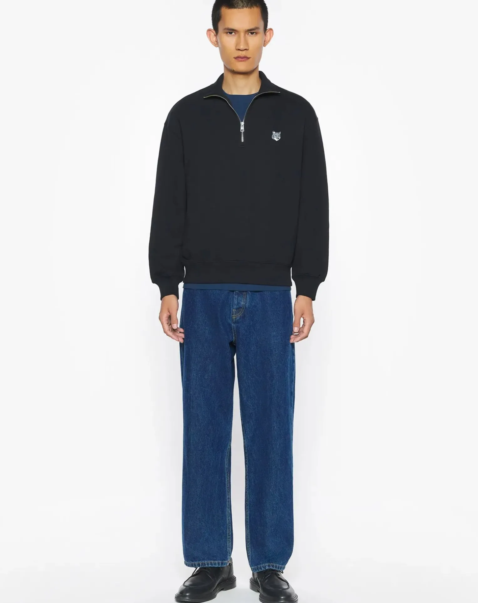 - Sweatshirt à col montant zippé en molleton. Coupe confort,patch brodé Grey Fox Head.