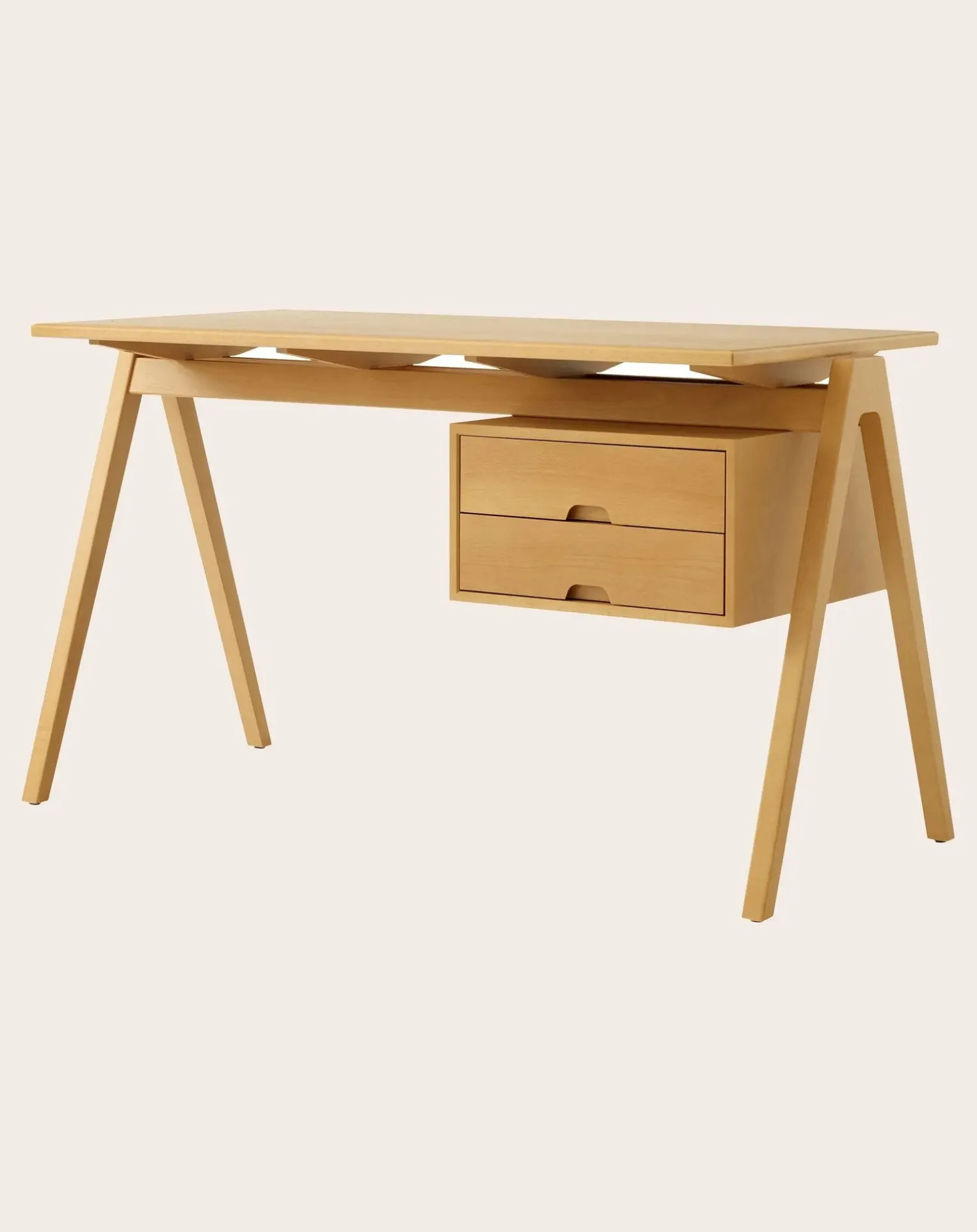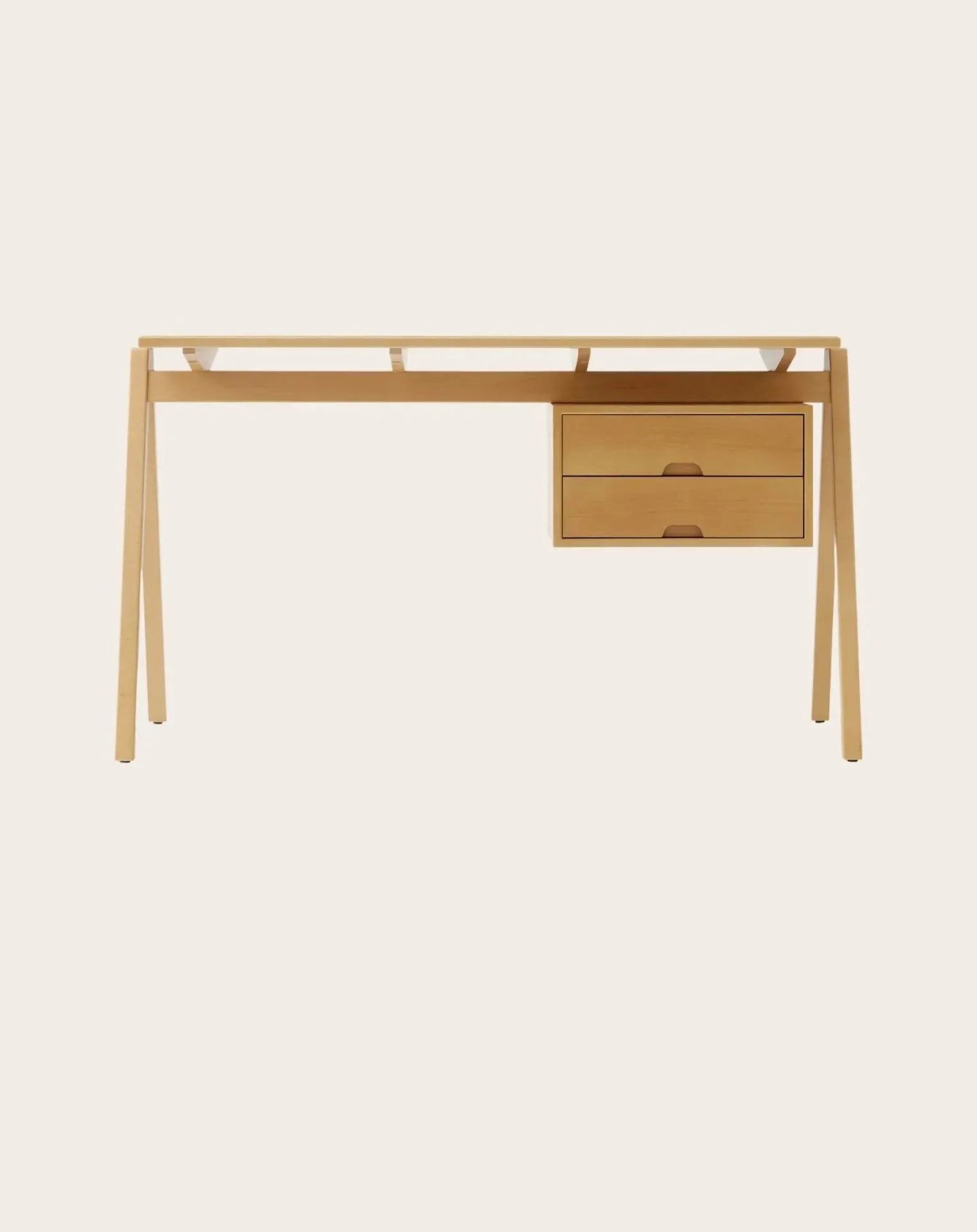 - Influencé par la notion de design flexible, le bureau Daystak met en évidence l’habileté de Robin Day à marier la forme et l’utilité. L’ajout d’un tiroir à queue d’aronde visible à la table Daystak élargit le potentiel fonctionnel du design pour créer un bureau qui incarne l’objectif créatif singulier de Day. La boîte à tiroirs peut être commandée séparément et placée d’un côté ou de l’autre de la table.