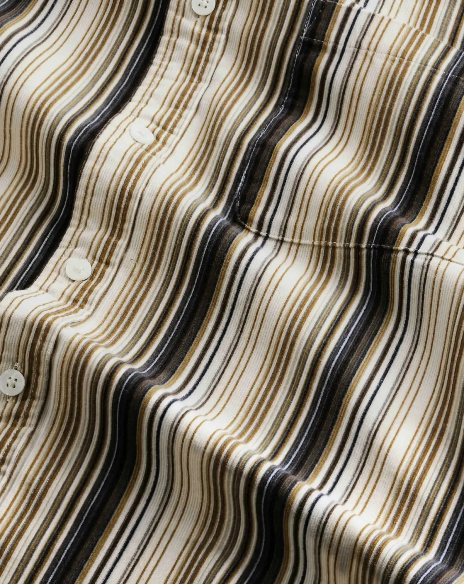 - Chemise confortable en velours côtelé de coton biologique teint en fil. Elle est dotée d’une poche plaquée et d’un ourlet incurvé. La manche est une épaule légèrement tombante.