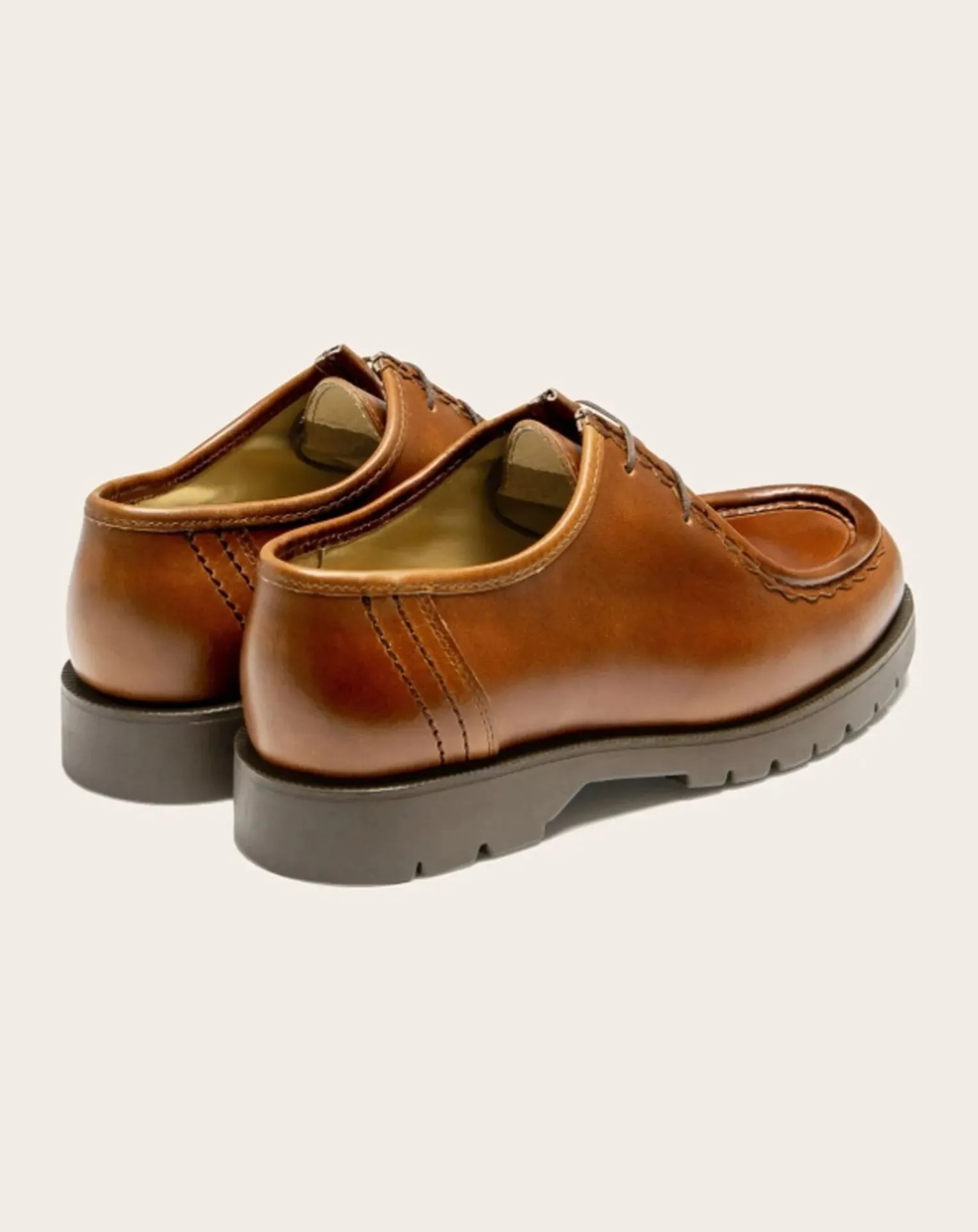 dessus cuir – doublure cuir + textile – première cuir – semelle caoutchouc