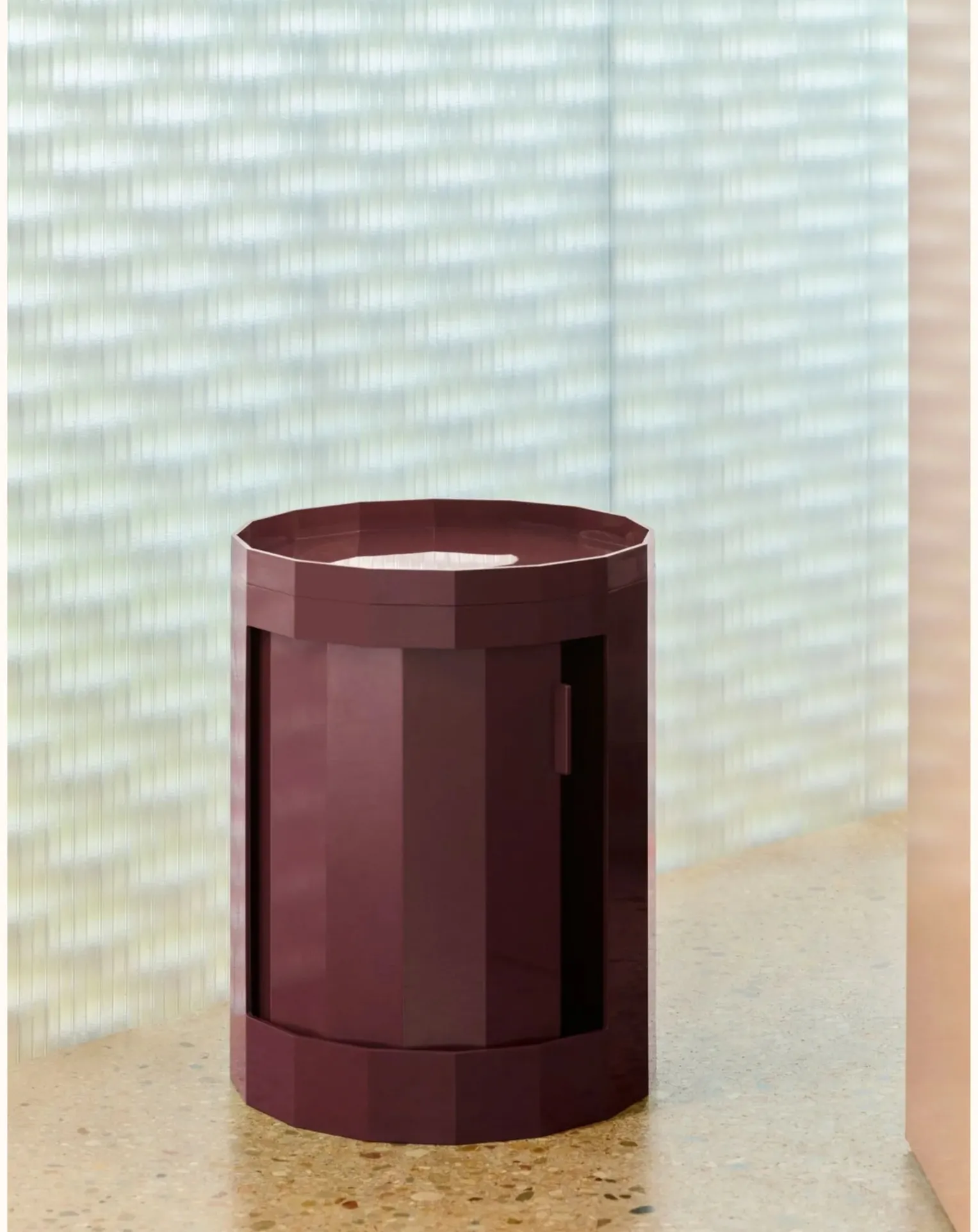 Conçu pour HAY par le designer néerlandais Stefan Scholten, le meuble Facet est une solution de rangement polyvalente et multifonctionnelle, facile à déplacer. Son nom provient des surfaces à facettes, qui ajoutent une touche sophistiquée au design minimaliste, Facet allie attrait visuel et grande fonctionnalité. Doté d’une porte tournante intégrée et de roulettes supplémentaires, Facet est conçu pour adapter sa tâche à son environnement. Fabriqué à partir d’au moins 30 % d’ABS recyclé post-consommation, le meuble Facet est disponible en deux hauteurs différentes dans une gamme de couleurs intemporelles. La flexibilité de Facet lui permet d’être utilisé dans une grande variété de pièces et de contextes – d’une table de chevet dans la chambre à coucher et d’une table d’appoint dans le salon à un organiseur de papeterie dans le bureau à domicile.