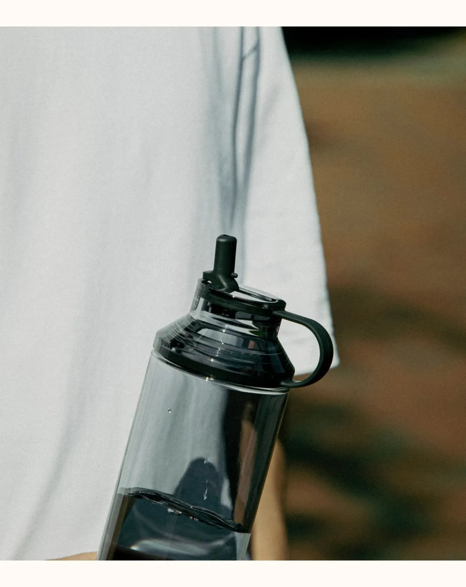 - ACTIVE BOTTLE est conçu pour favoriser un mode de vie sain et durable. Fabriquée à partir de matériaux recyclés, elle est transparente comme le verre tout en étant durable. La poignée flexible permet de la transporter facilement en extérieur. Bien que légère, la bouteille offre une grande capacité. Elle est très transparente comme le verre, tout en étant durable et adaptée à un usage quotidien. Fabriquée avec plus de 50 % de matériaux recyclés certifiés. Le bec verseur de type paille permet de boire facilement d’une seule main. Le bord est arrondi, ce qui le rend agréable à porter à la bouche. La poignée tient bien dans la main. Fabriquée dans un matériau souple, elle ne blesse pas les doigts, même lorsque la bouteille est alourdie par une grande quantité de boisson à l’intérieur. Le large goulot a une structure simple, ce qui facilite le remplissage et le nettoyage. Fabriquée avec plus de 50 % de déchets plastiques récupérés. Sans BPA. L’anneau en silicone est facile à retirer et à laver.