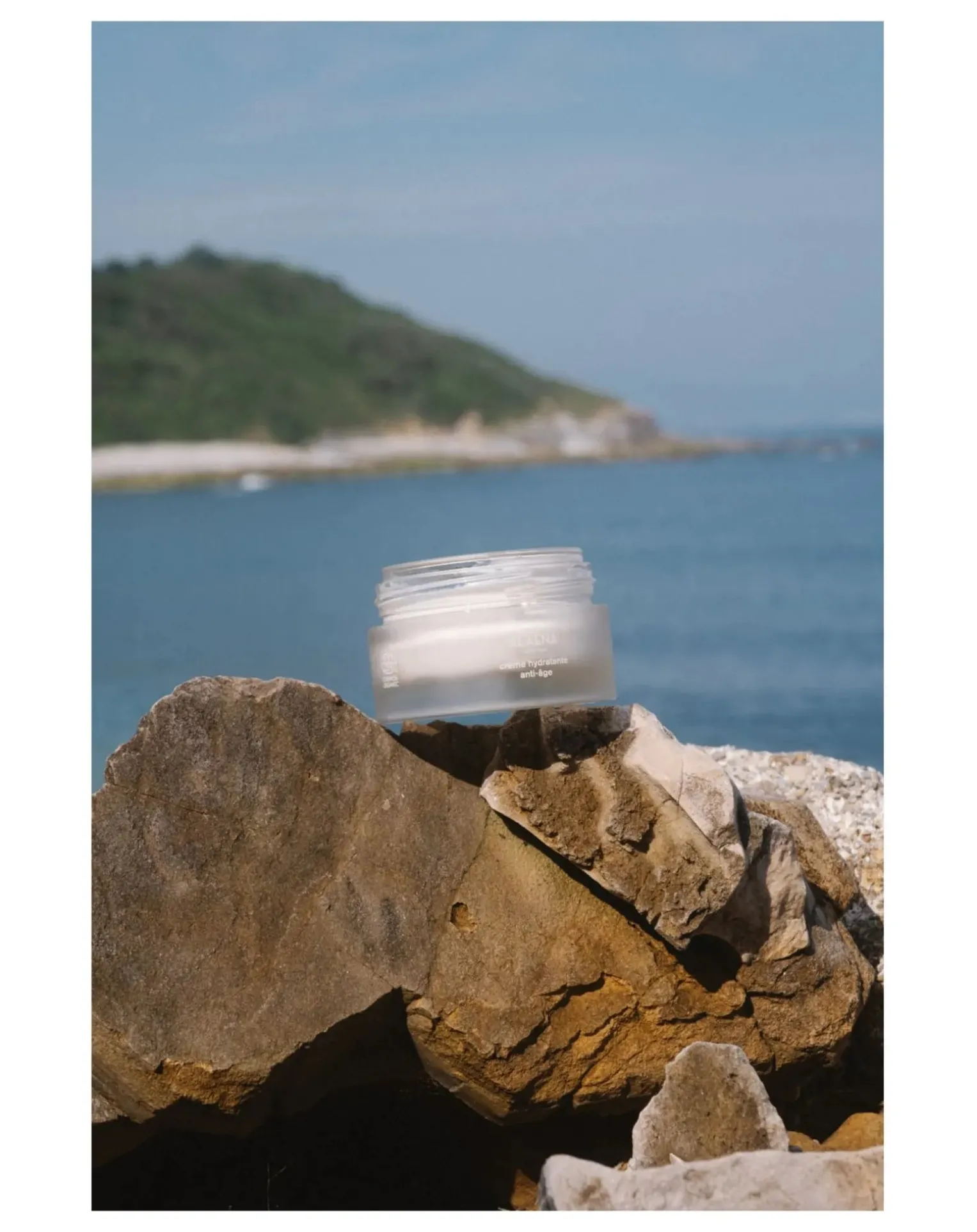 L’extrait de graines germées Alaena est riche en antioxydant, vitamines et acides aminées. L’acide hyaluronique apporte les bénéfinces hydratants et repulpants tandis que l’extrait d’algues rouge Undaria renforce la matrice extra–cellulaire. La formule présente également de la vitamine C, qui stimule la synthèse du collagène et le renouvellement des fibroblastes ainsi que du ramboutan et de l’extrait de propolis, puissants antioxydant et anti-glycation. Et pour finir, l’huile de camélia possède des vertus assouplissantes et anti-âge.