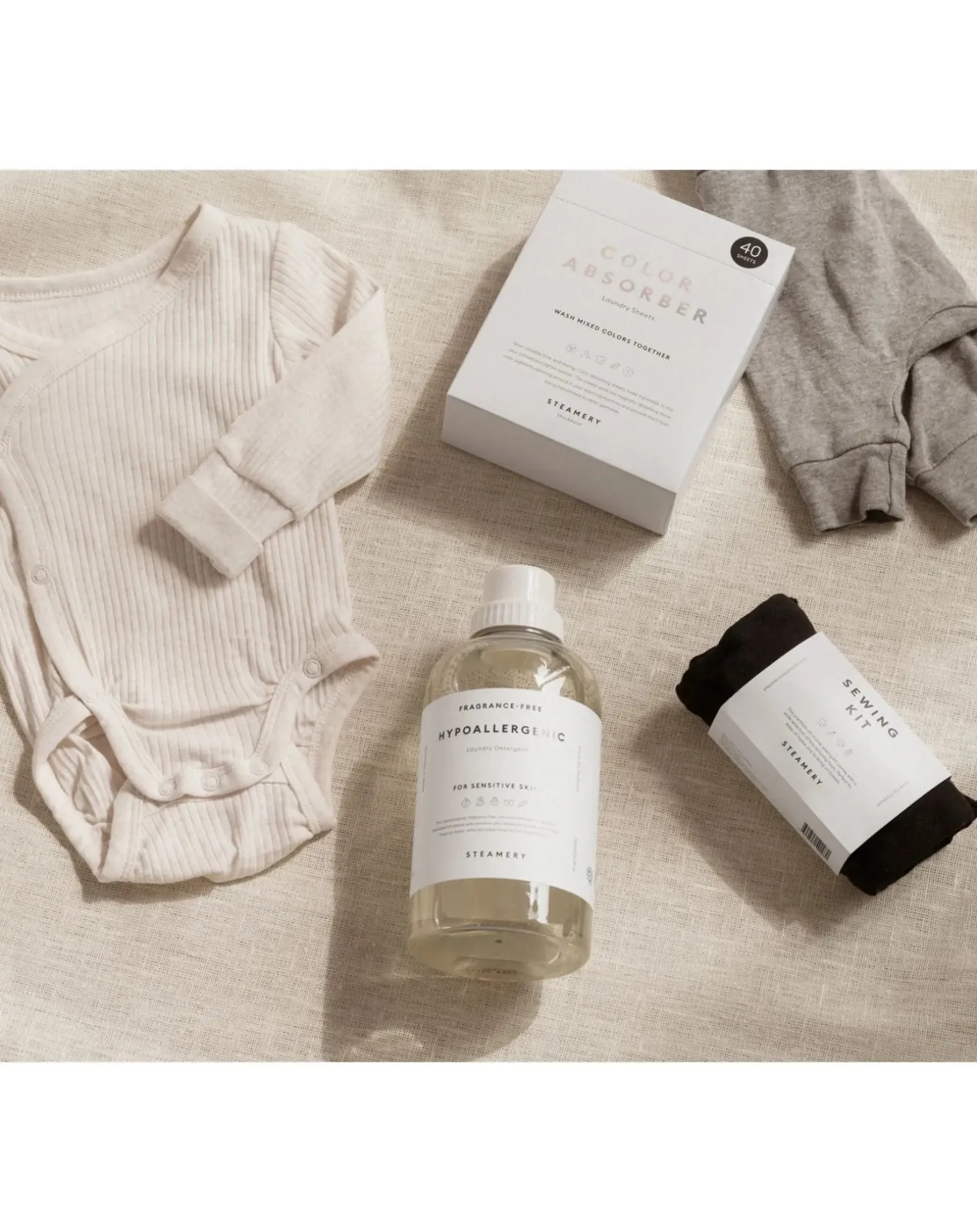 Cette lessive hypoallergénique sans parfum à haute efficacité a été développé pour les personnes ayant la peau sensible, les bébés et les enfants.