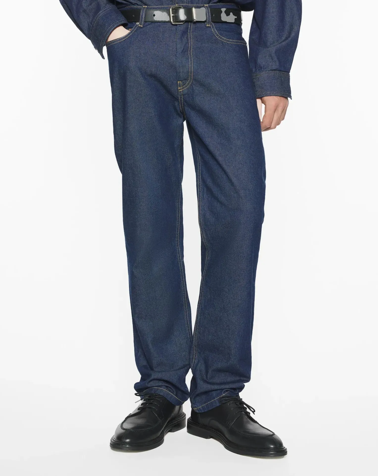 - Jean en denim japonais. Coupe droite avec jacron embossé Maison Kitsuné Handwriting.