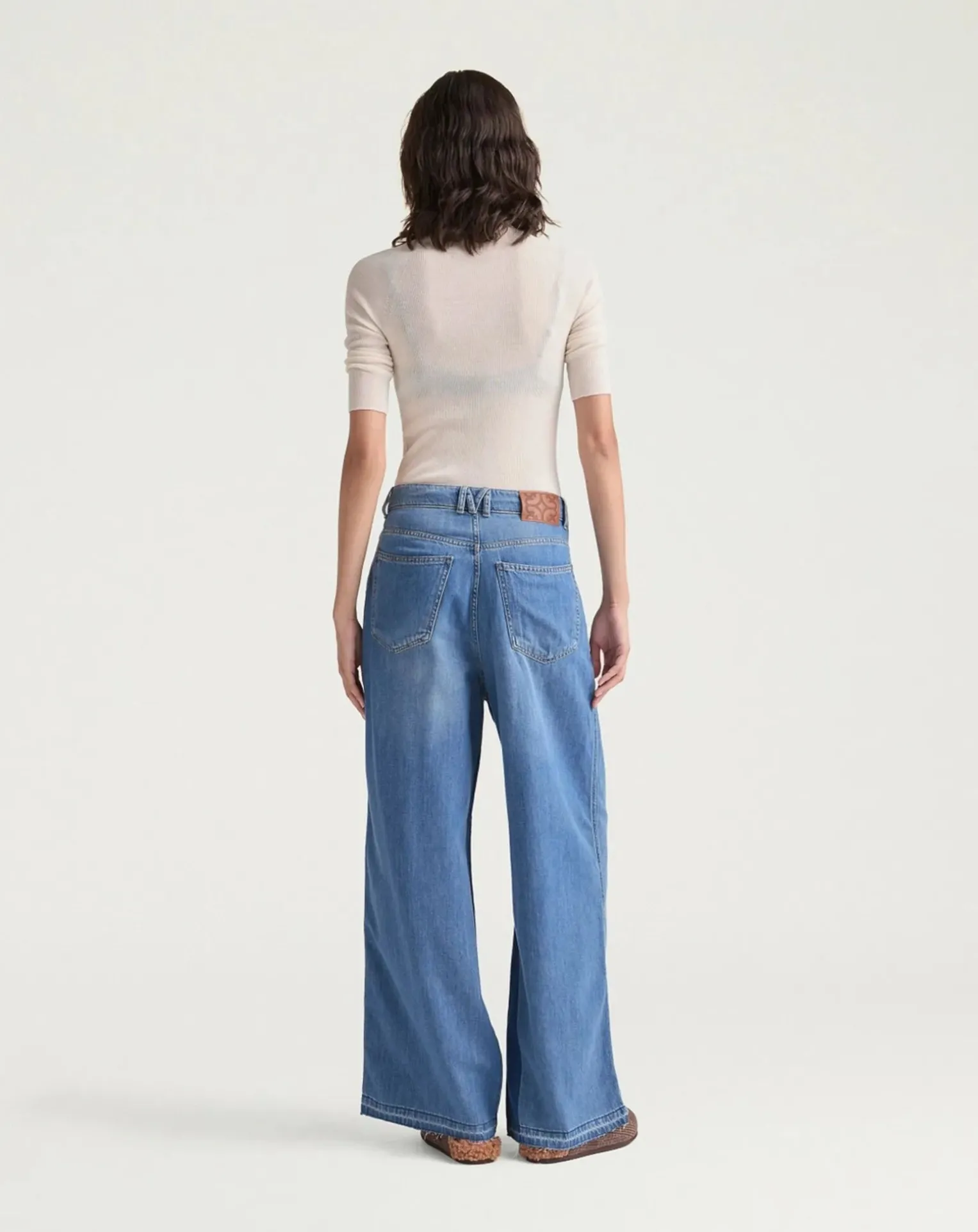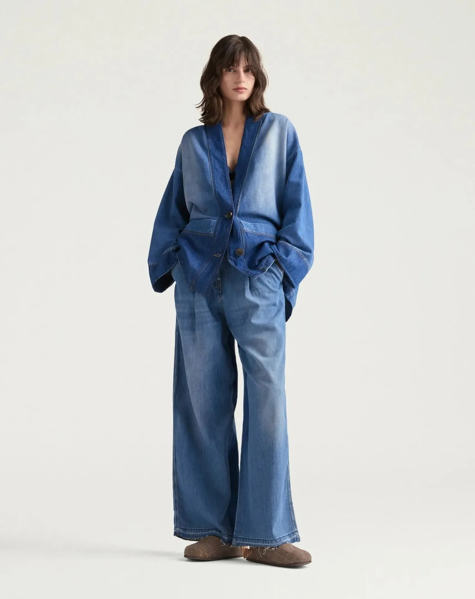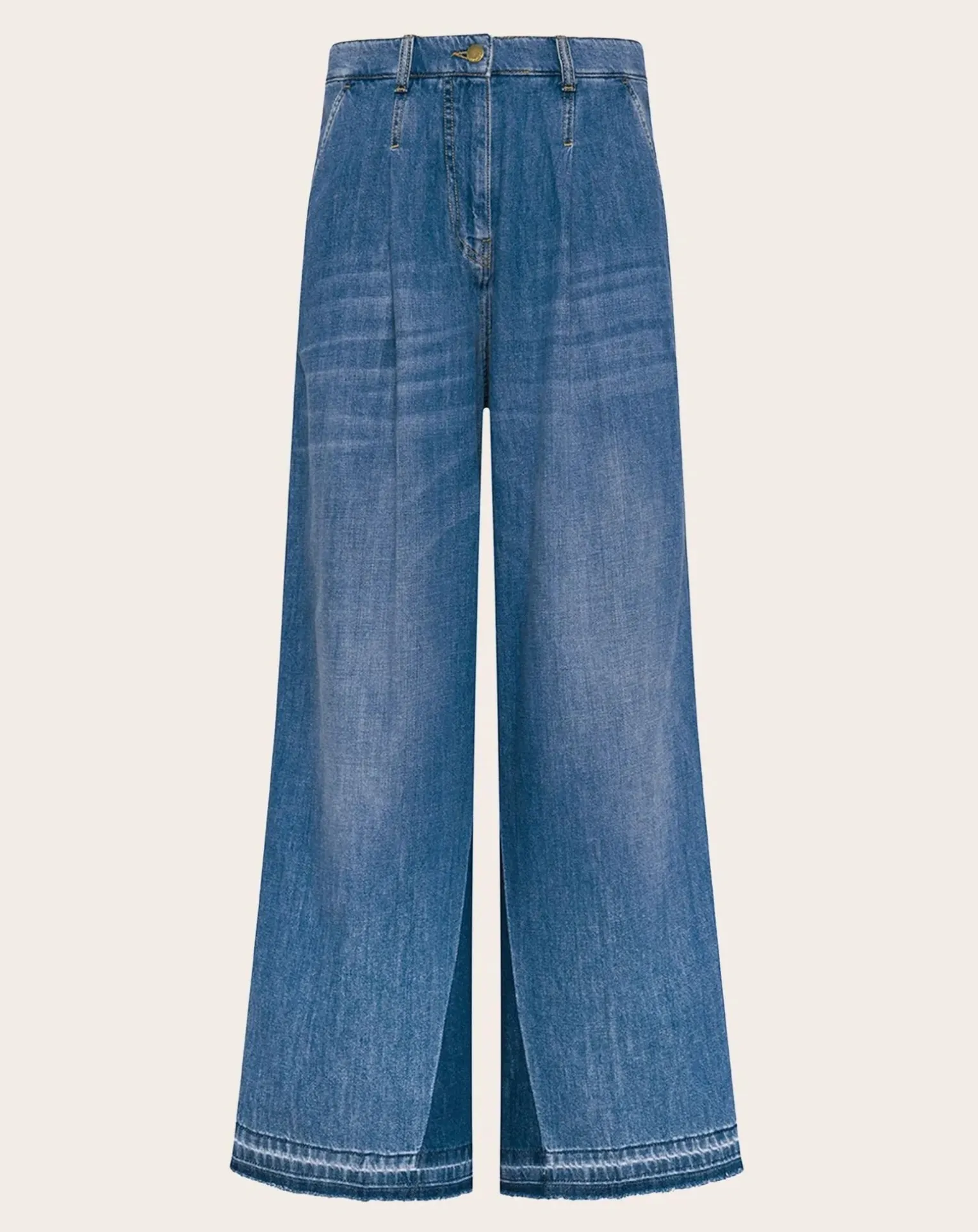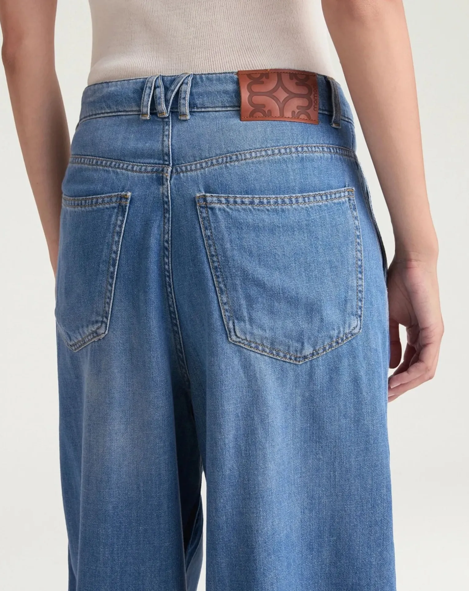 - Pantalon over avec cut homme avec pinces en denim indigo. Ligne de couture traduite en denim et rendue unique par l’utilisation des réserves de couleur contrastée à l’intérieur et au bas de la jambe découpée. Les détails sont le passe-partout Momoni, la peau en cuir personnalisé, cocuture de tabac et de la métallurgie de canon de fusil.