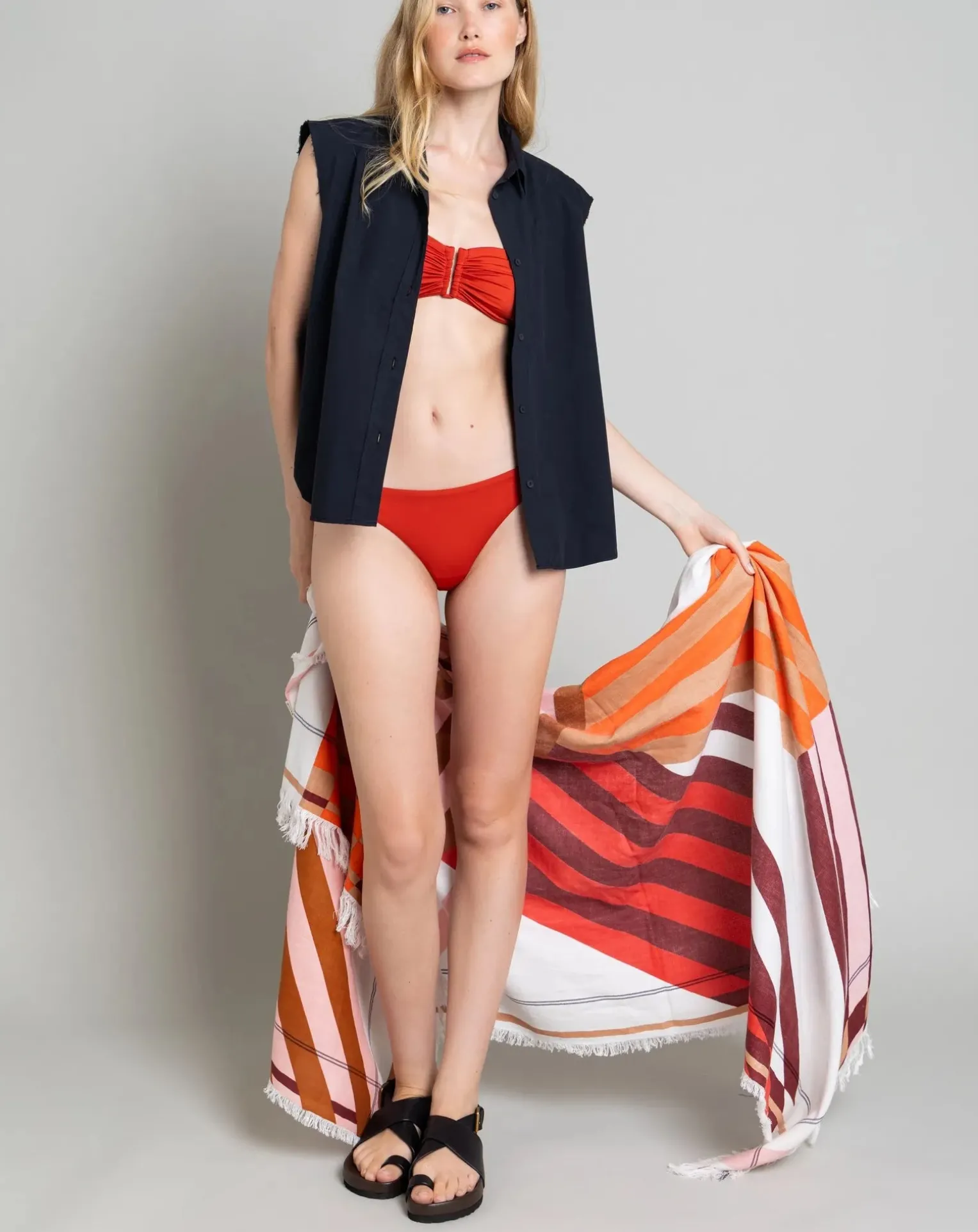 - – Chemise sans manches bords francs- Coupe oversize- Col plat et pied de col- Forme arrondie dans le bas- Plus longue dans le dos- Popeline craquante effet froissé
