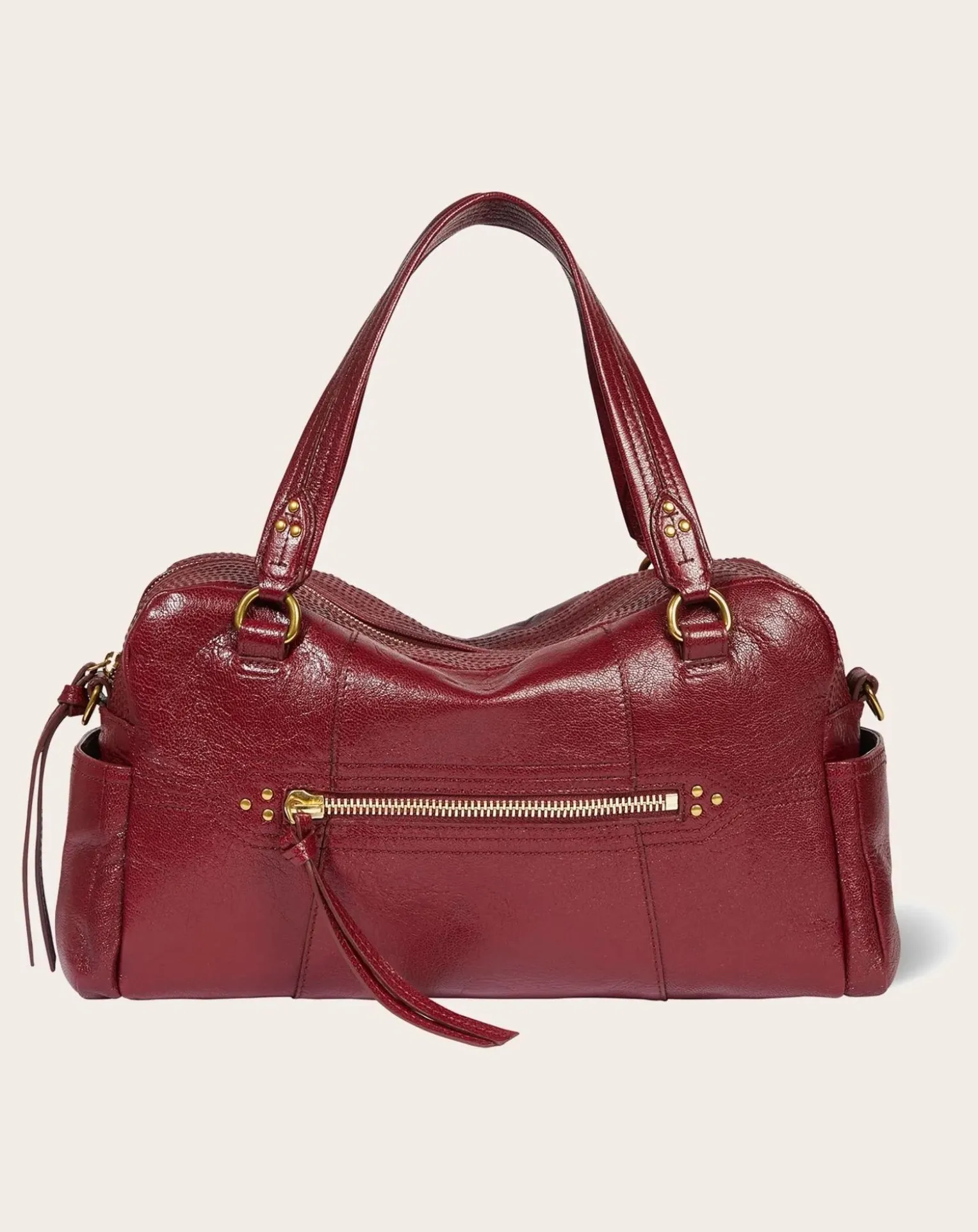 - Sac bowling porté épaule, croisé ou à la main. Bandoulière amovible, fermeture zippée avec des liens en cuir.