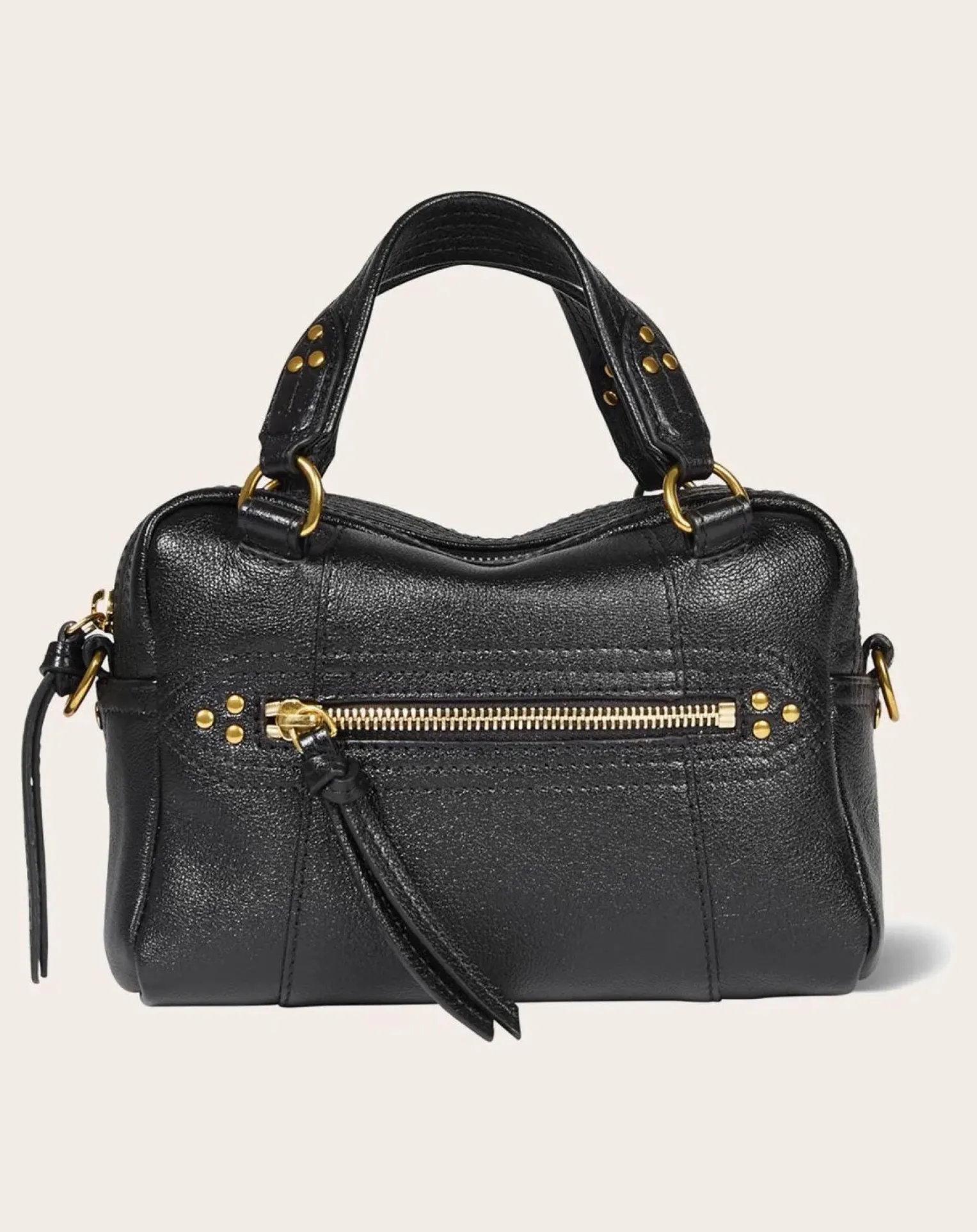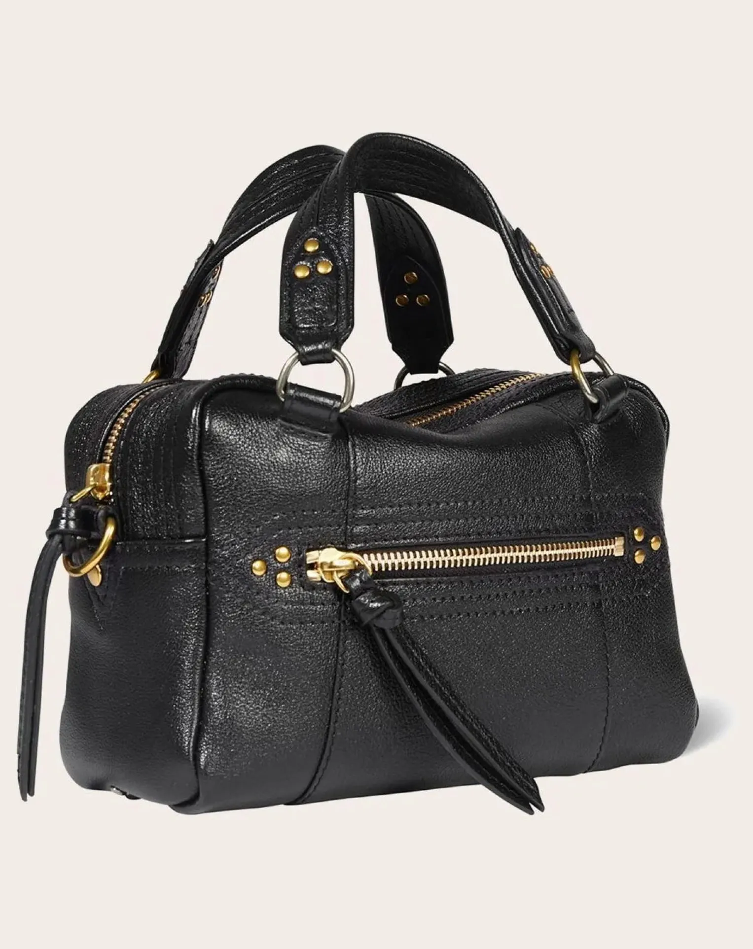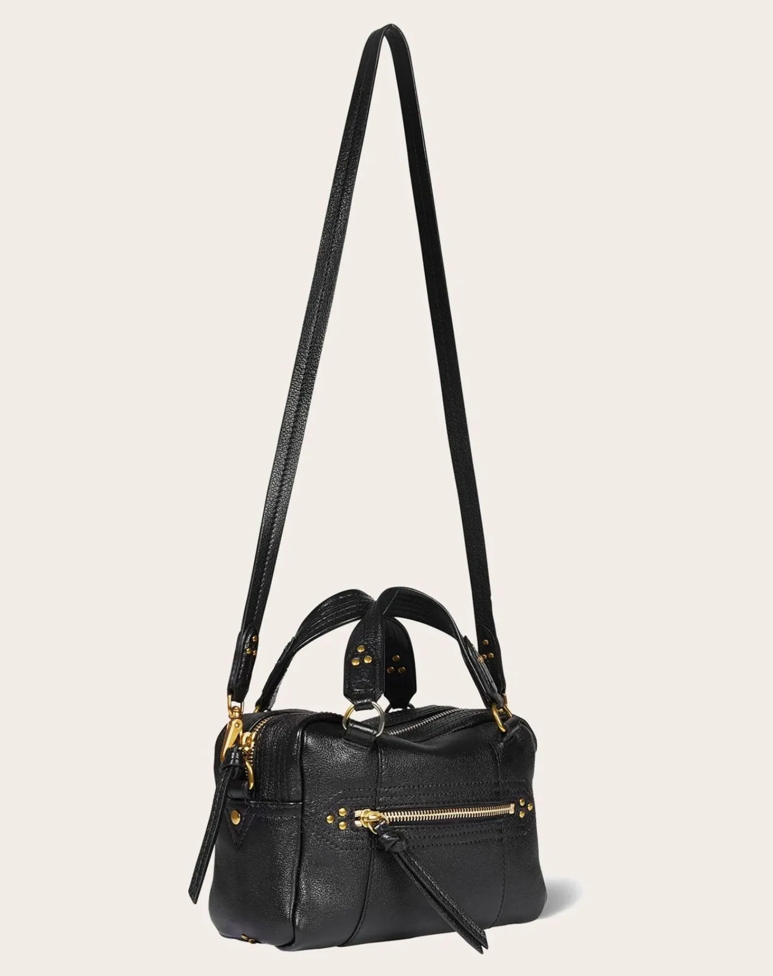 - Sac bowling porté croisé ou à la main. Bandoulière amovible, fermeture zippée avec des liens en cuir.