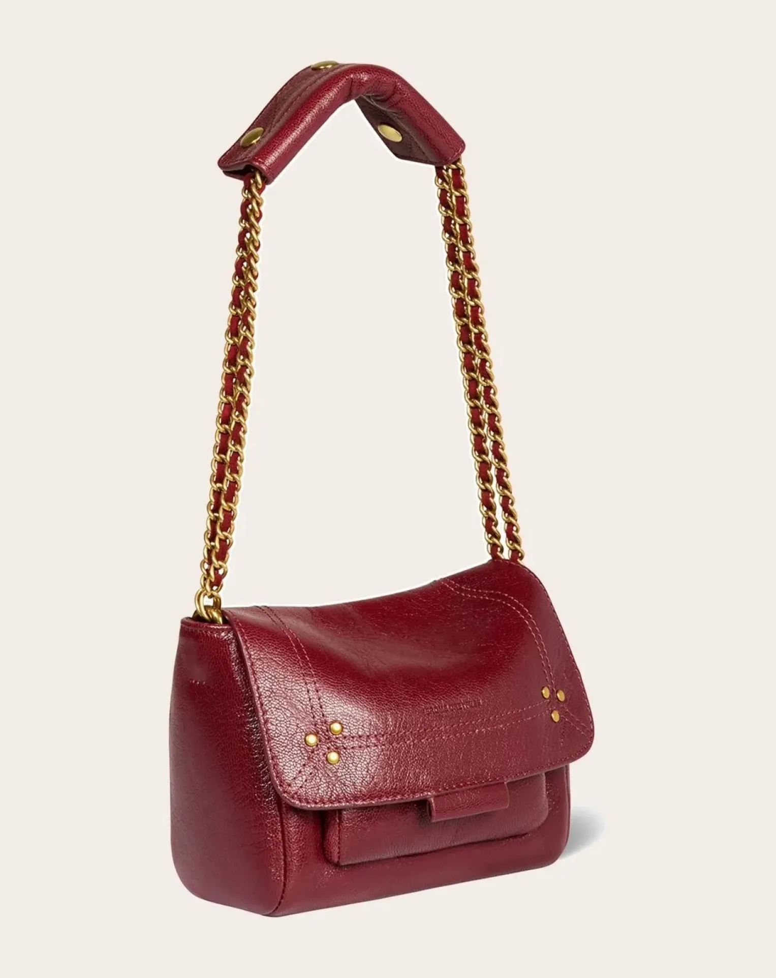 - Mini sac en cuir, porté épaule ou croisé. Bandoulière chaîne et cuir, amovible et ajustable. Rabat avec fermeture aimantée.