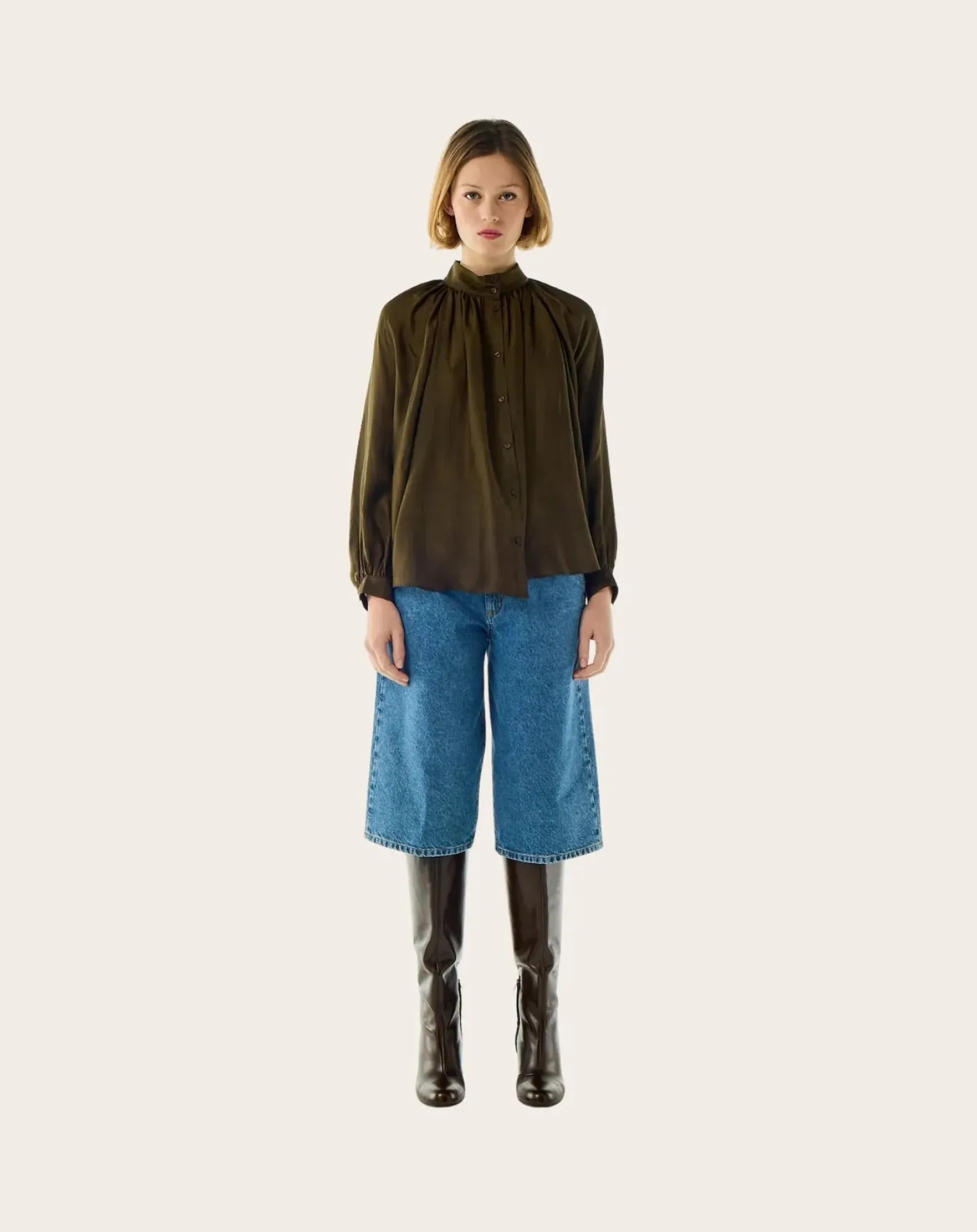 - – Blouse en soie- Coupe ample- Manches raglans- Col haut avec boutonnage tout du long