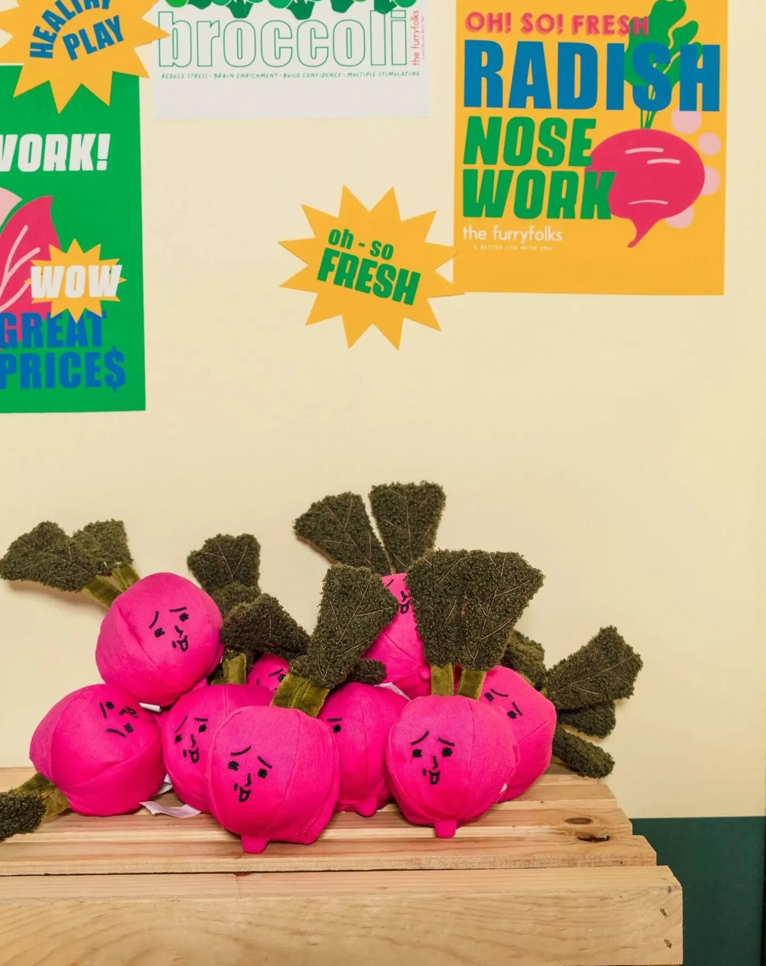- the furryfolks livre des jouets frais à votre porte Vous cherchez des légumes avec lesquels nos petits compagnons peuvent jouer sainement ? Voici l’irrésistible jouet Radish nosework ! Tout d’abord, retirez le tissu intérieur de la poche à radis. Retirez le tissu intérieur de la poche du radis. Ensuite, cachez des friandises en les enveloppant dans chaque cercle du tissu intérieur. Enfin, remettez le cercle du tissu intérieur avec les friandises dans la poche et donnez-la à nos amis à fourrure. Plus ils joueront avec le jouet, plus ils se sentiront confiants et soulagés du stress.