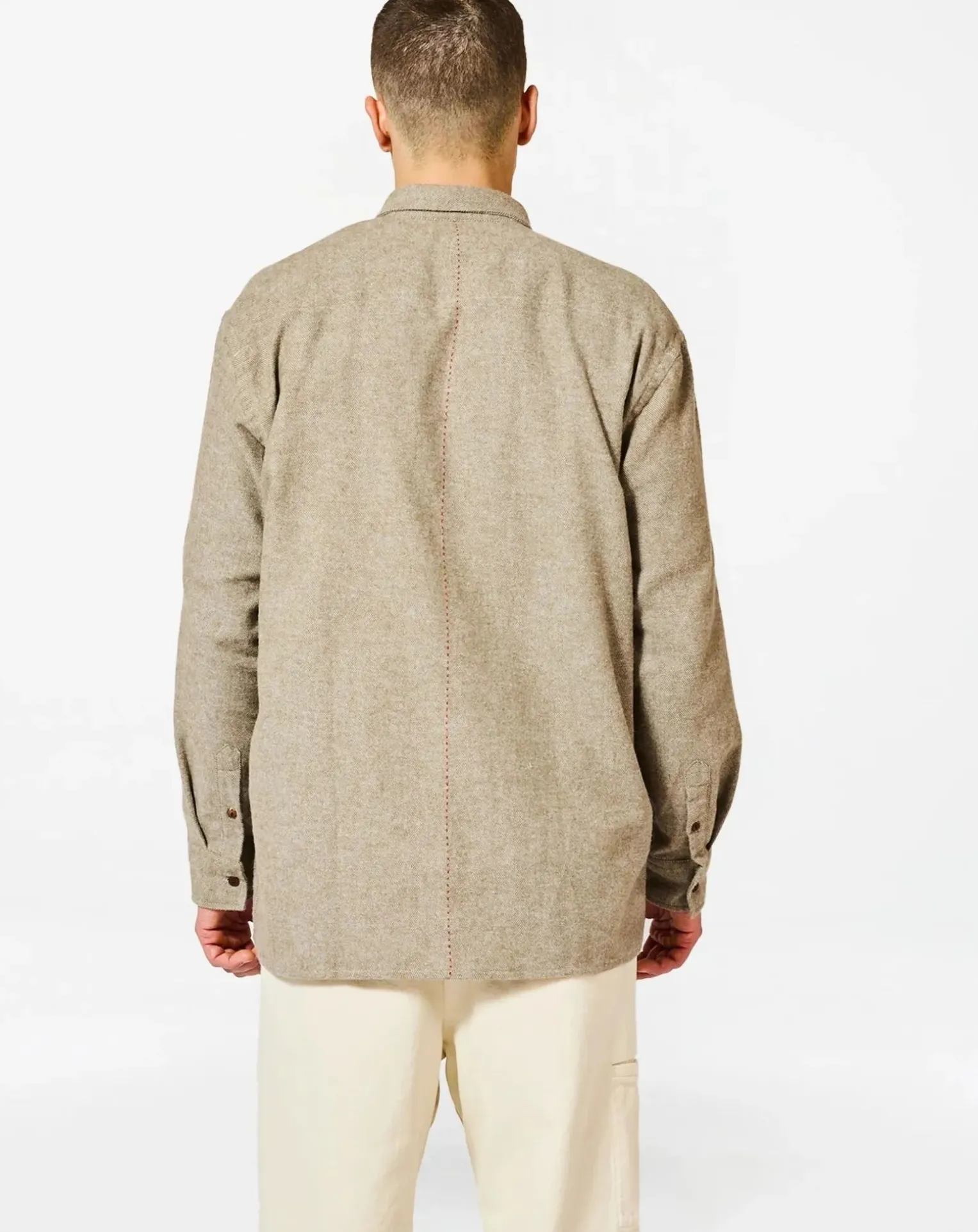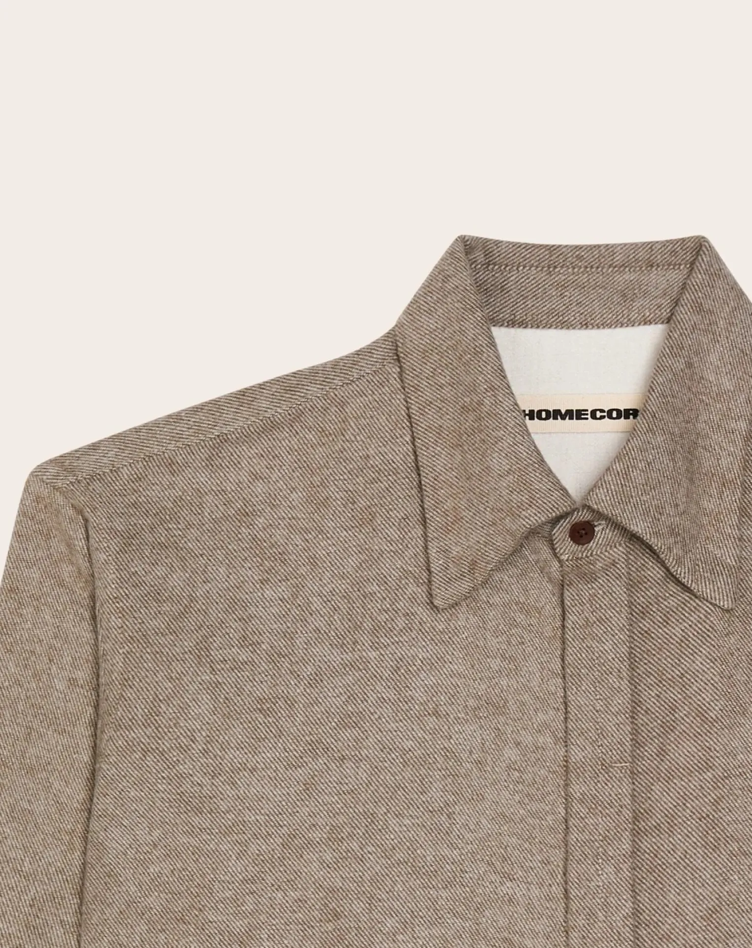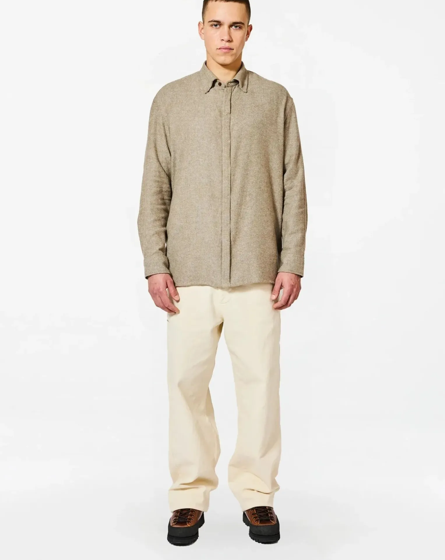 - Adoptez un style épuré et moderne avec la chemise Shadow Alaska Khaki de HOMECORE.Cette chemise à manches longues se distingue par sa coupe boxy ample et structurée, idéale pour un look contemporain. Le col boutonné invisible, l’empiècement intérieur contrasté et les points de couture rouge décoratifs sur le devant et le dos en font une pièce unique, alliant sobriété et identité forte.