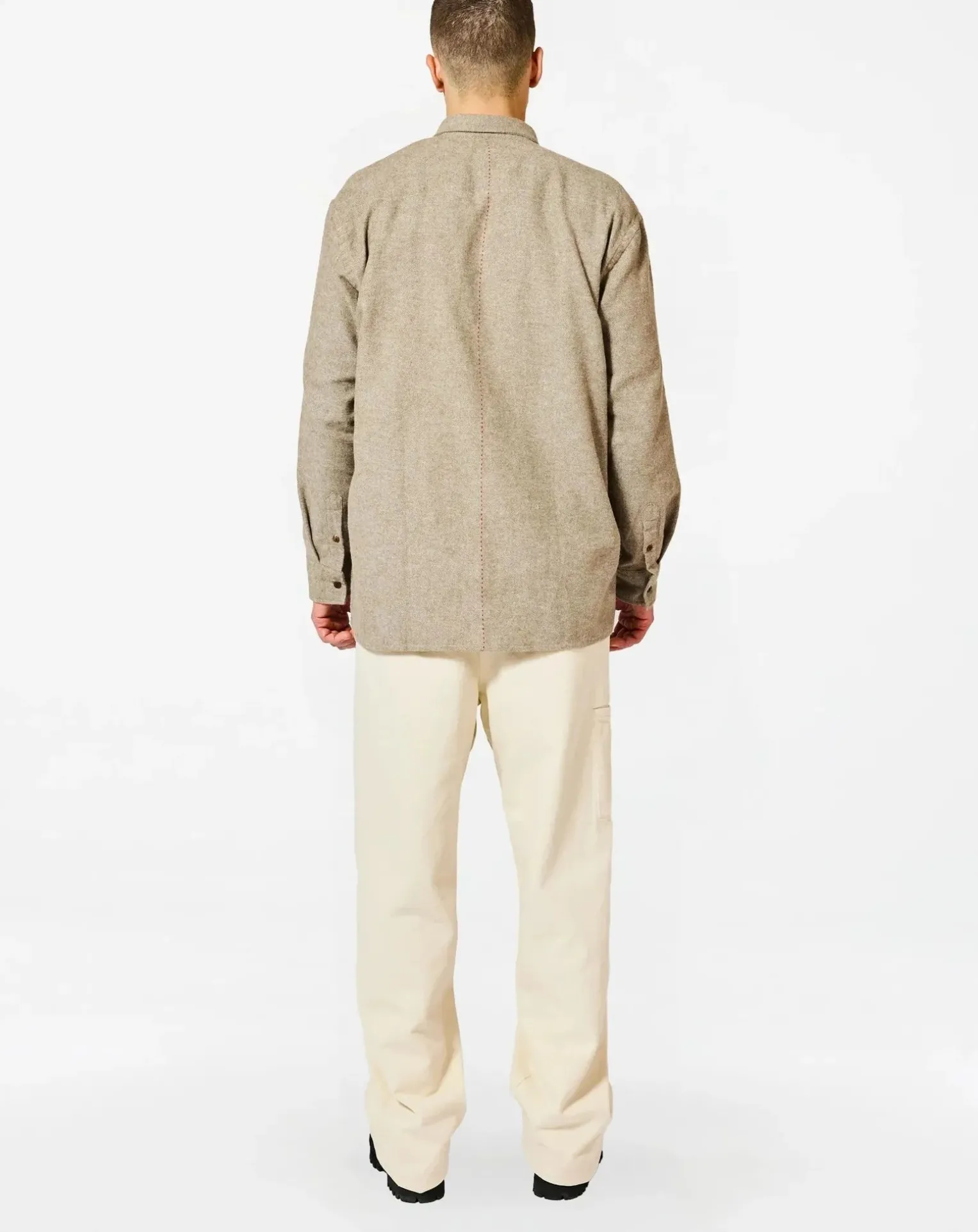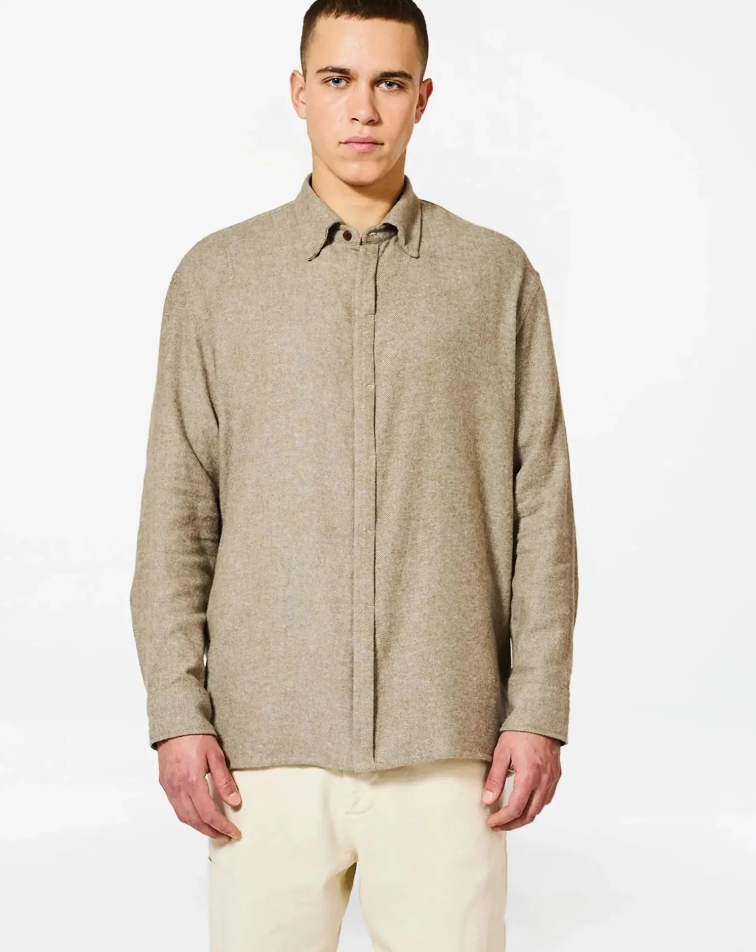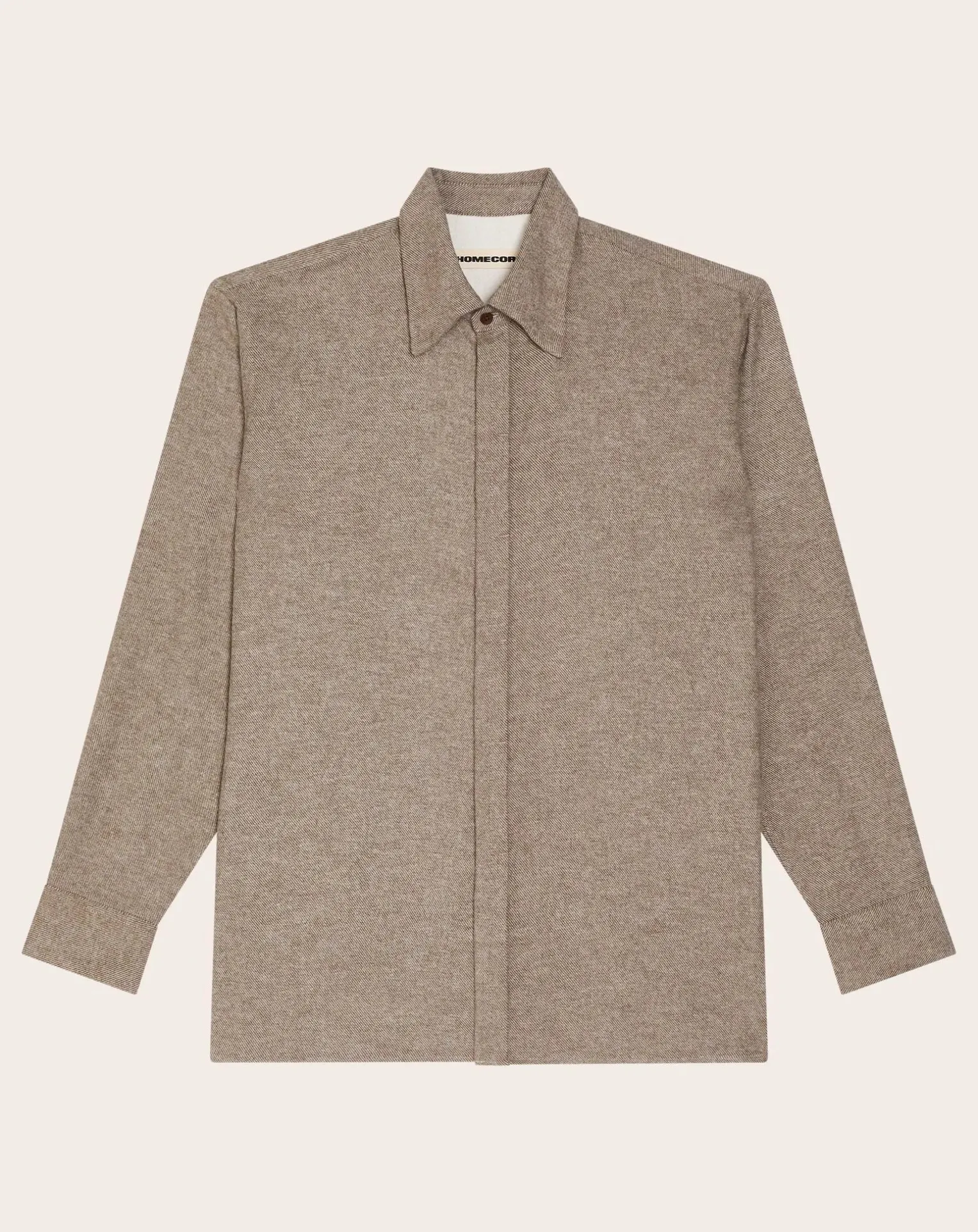 - Adoptez un style épuré et moderne avec la chemise Shadow Alaska Khaki de HOMECORE.Cette chemise à manches longues se distingue par sa coupe boxy ample et structurée, idéale pour un look contemporain. Le col boutonné invisible, l’empiècement intérieur contrasté et les points de couture rouge décoratifs sur le devant et le dos en font une pièce unique, alliant sobriété et identité forte.