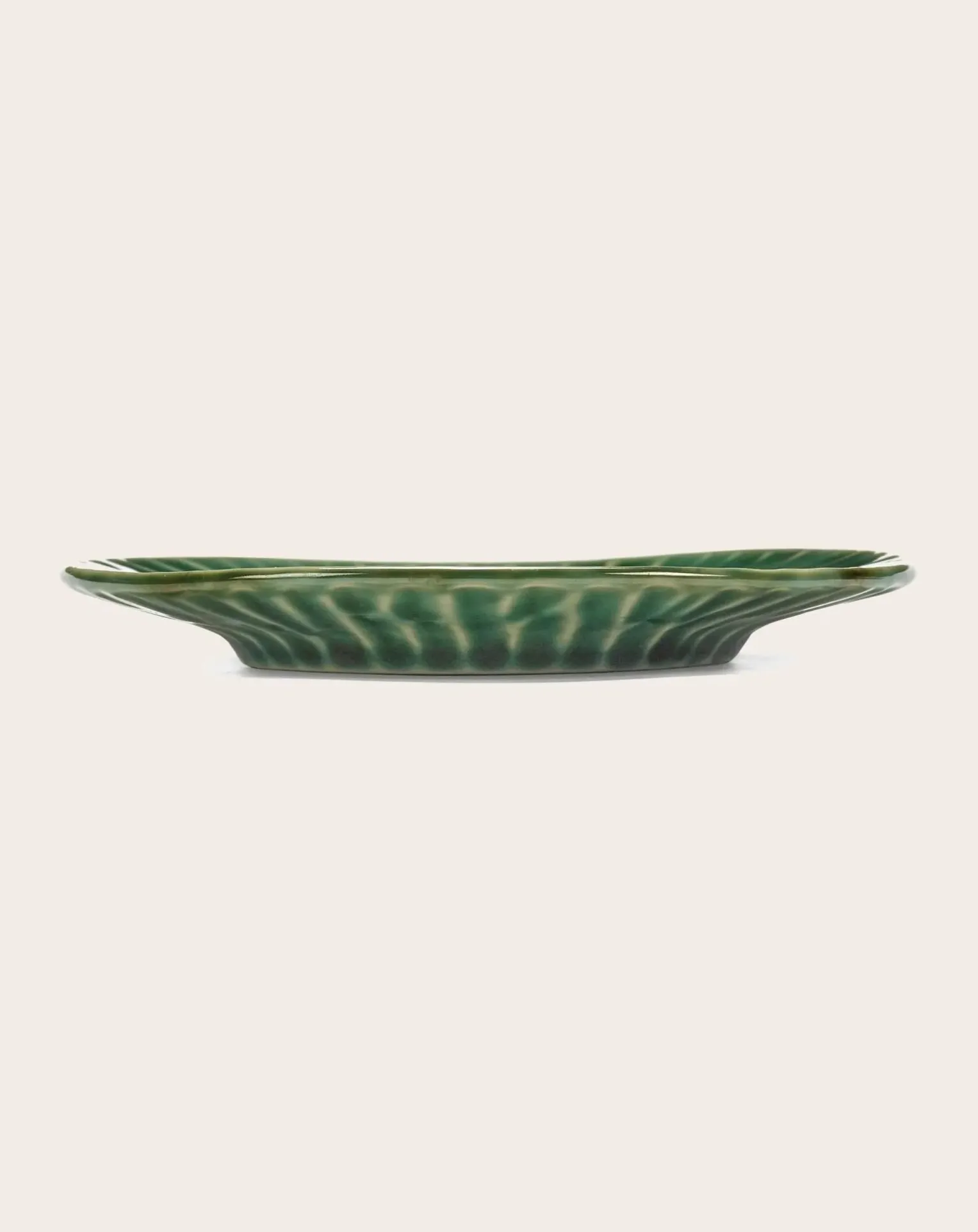 - Pour son dernier livre « Eén Pan », Naessens n’a pas seulement pris la plume, elle est aussi retournée dans son atelier de céramique. Elle a personnellement créé la collection « Verde Lanza », désormais produite en exclusivité par Serax. Le nom fait référence à l’île de Lanzarote, où Naessens réside souvent. Elle s’y est inspirée du vert des fenêtres et des portes en bois, ainsi que des rares plantes qui se détachent sur le paysage lunaire noir. Le vert délavé par le soleil – une teinte qui se marie à merveille avec tout ce qui est délicieux – est rehaussé par la texture en forme de coquillage que Naessens a appliquée avec ses doigts. En bref : cent pour cent Pascale et autant de soleil.