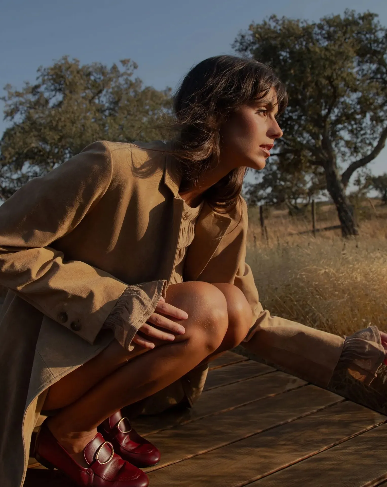 - dessus : cuir bordeaux avec application intérieur : doublure souple en cuir camel avec semelle intérieure en mousse pour plus de confort semelle : semelle antidérapante – cuir avec caoutchouc à l’avant talon : 1,5 cm sac à poussière et boîte