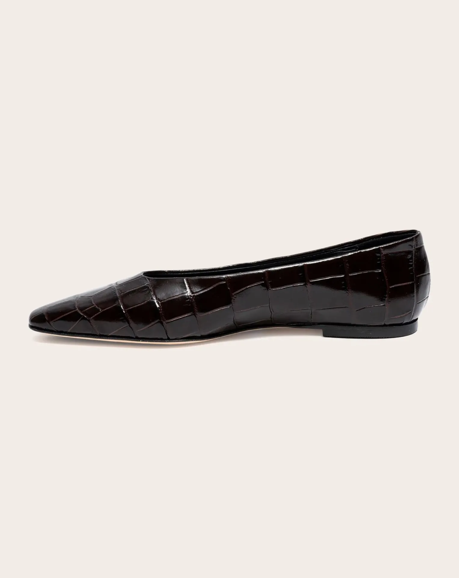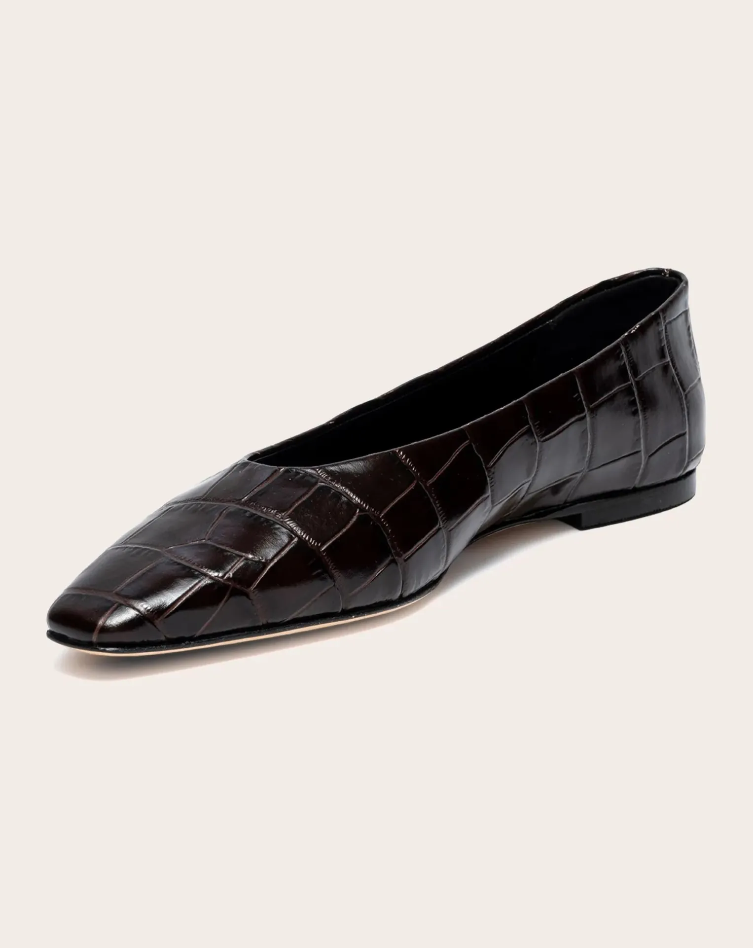 - These flats are known for their semi pointy toe,croc print leather