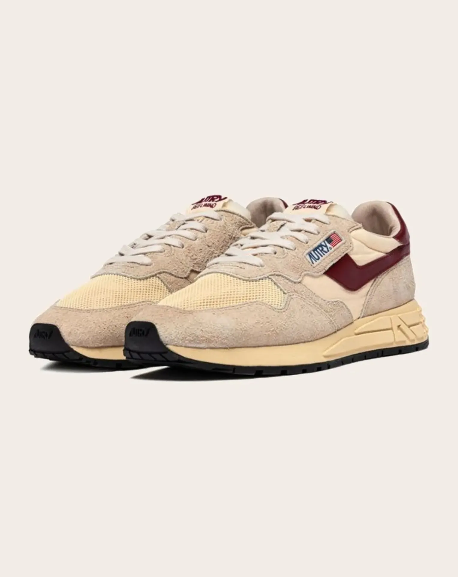 - Innovante, légère et extrêmement flexible, Reelwind est la sneaker Autry inspirée du monde de la course à pied. Le modèle pour femme est composé d’un mélange de daim et de nylon noir avec un patch en cuir blanc sur les côtés.Conçu pour un style de vie dynamique, il présente une silhouette élégante et une construction performante qui offre une liberté de mouvement maximale. La semelle en caoutchouc avec bande de roulement en relief est personnalisée avec la flèche A qui réinterprète le logo de manière graphique et moderne.
