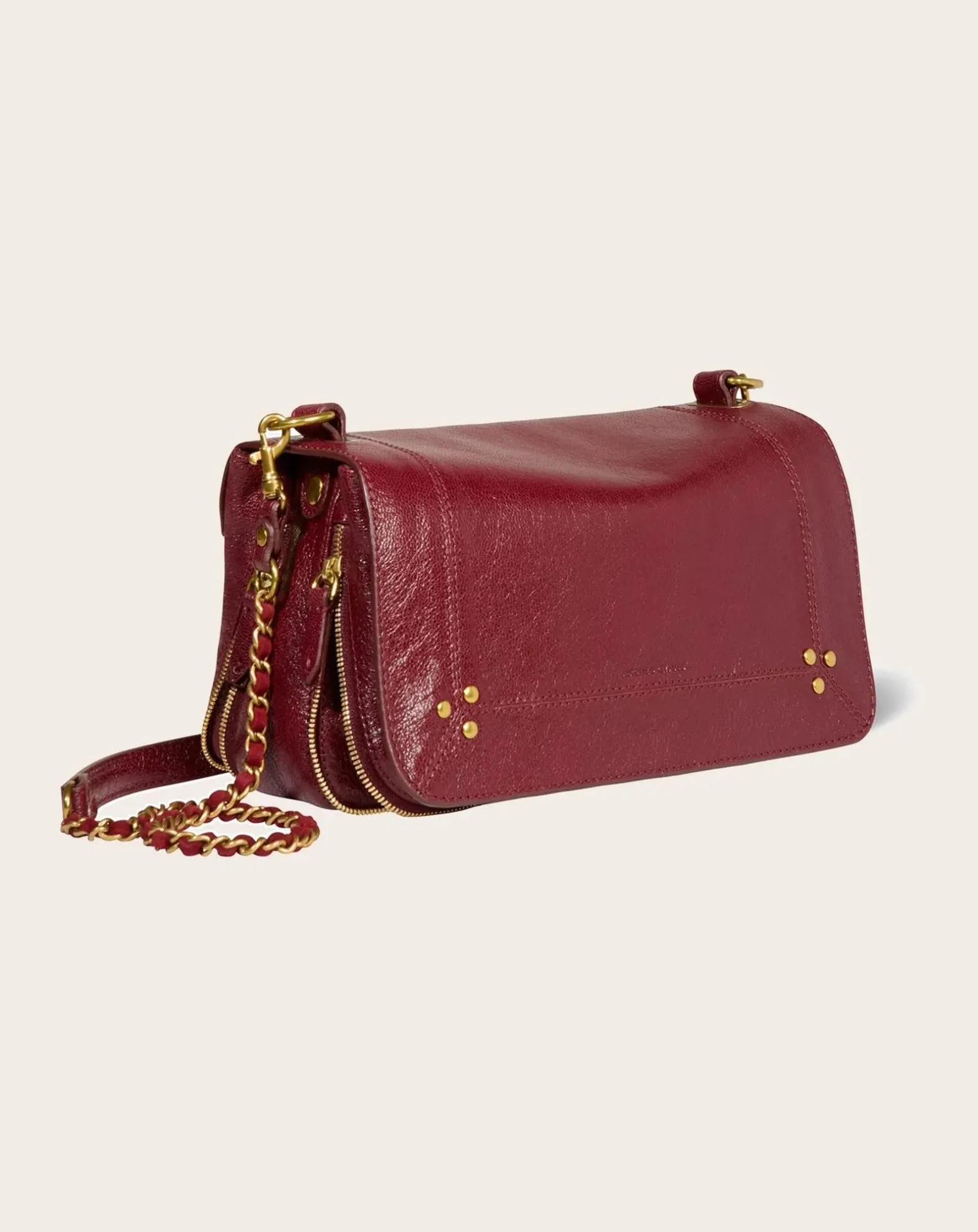 - Sac bandoulière, porté à l’épaule ou en croisé. Bandoulière amovible en chaine tressée de cuir réglable en deux longueurs. Fermeture par un rabat en cuir aimanté.