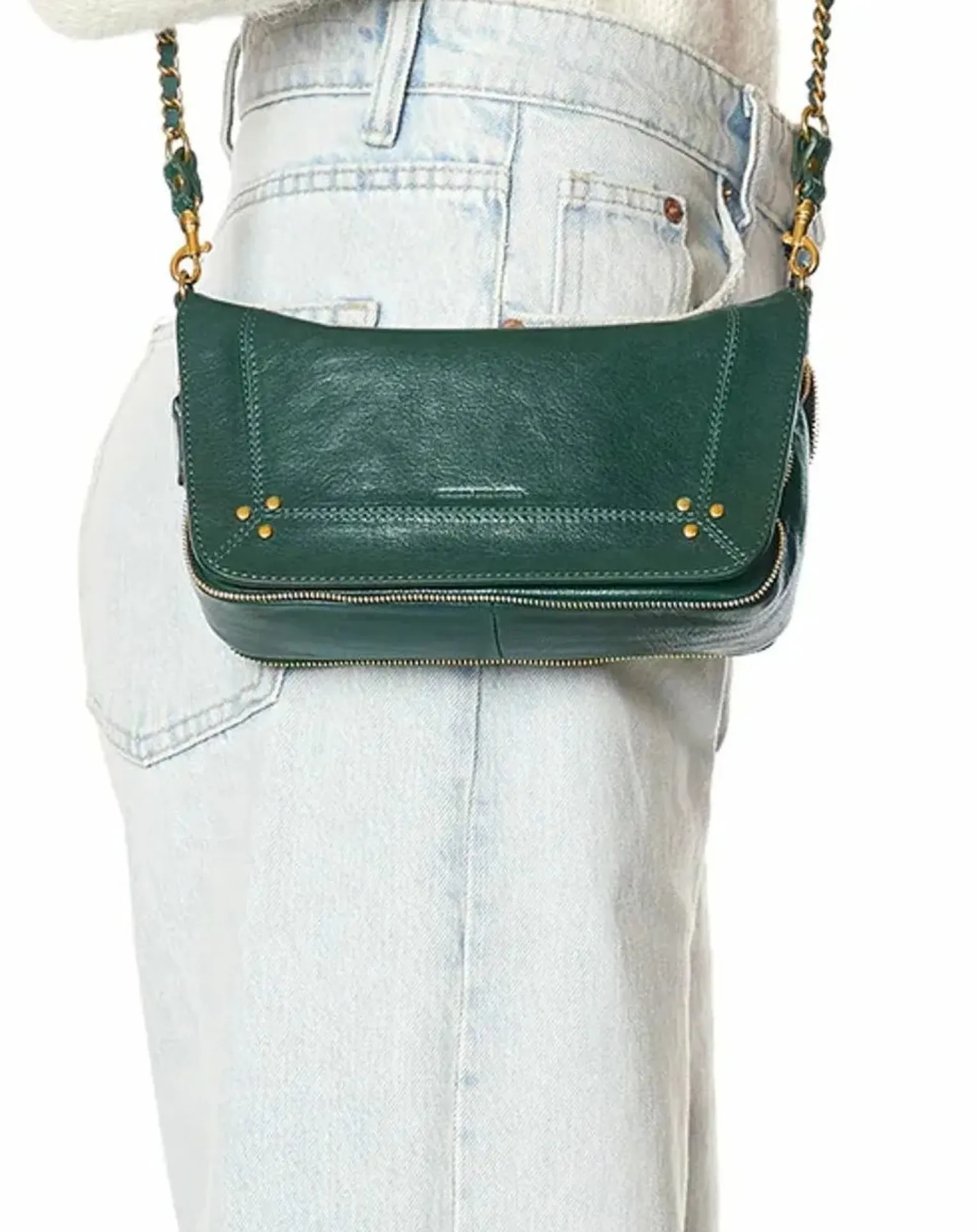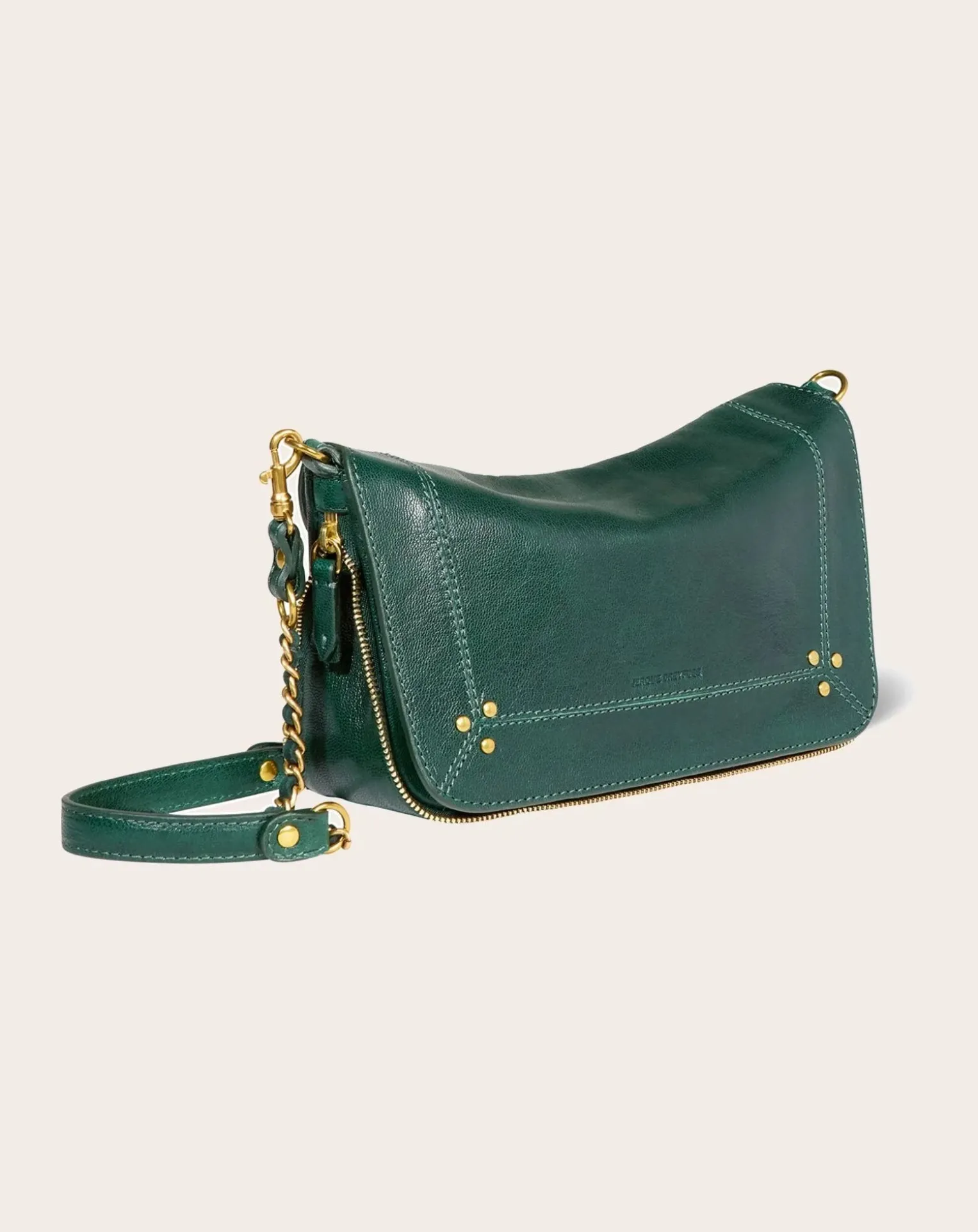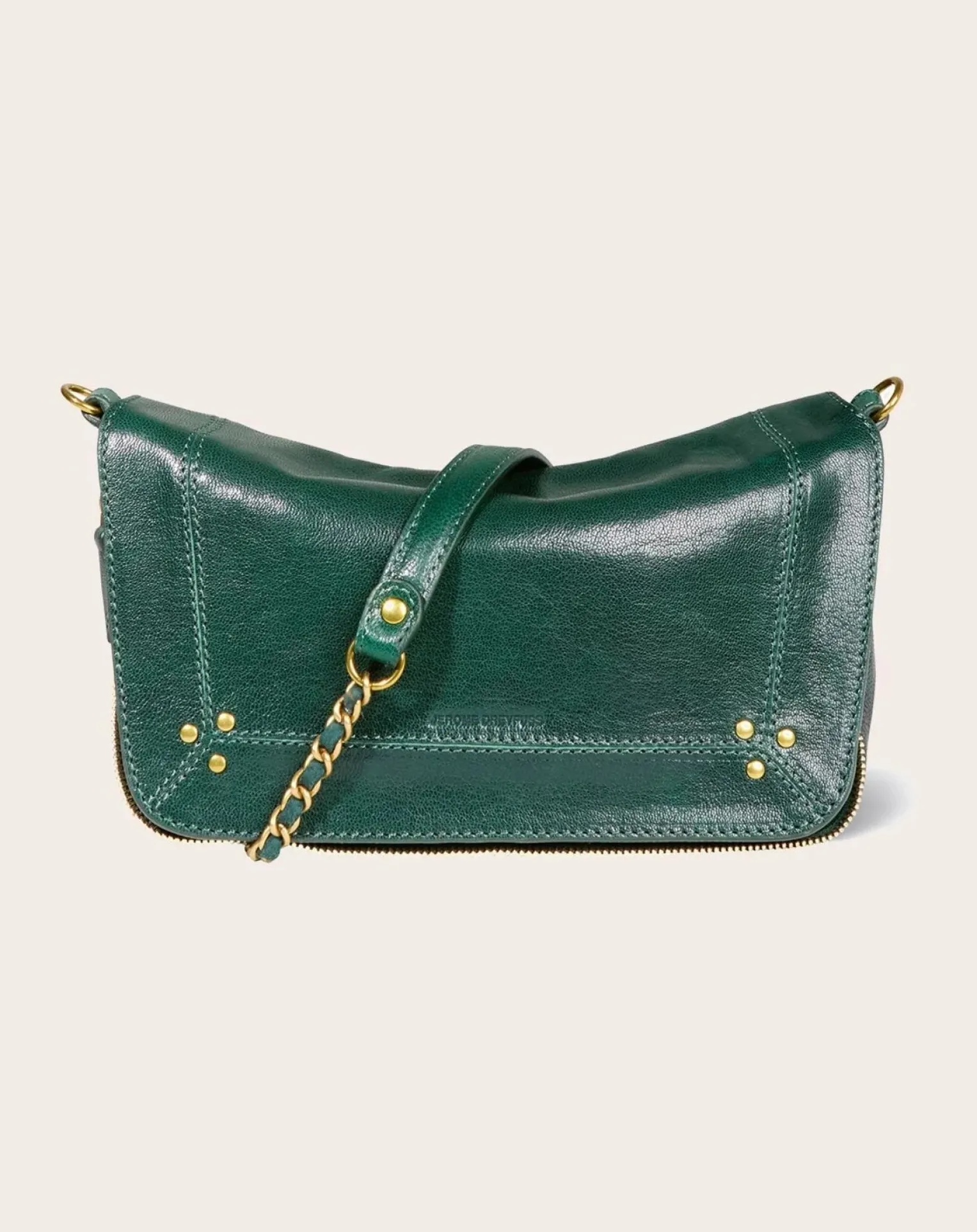 - Sac bandoulière, porté à l’épaule ou en croisé. Bandoulière amovible en chaîne tressée de cuir. Fermeture par un rabat en cuir aimanté.
