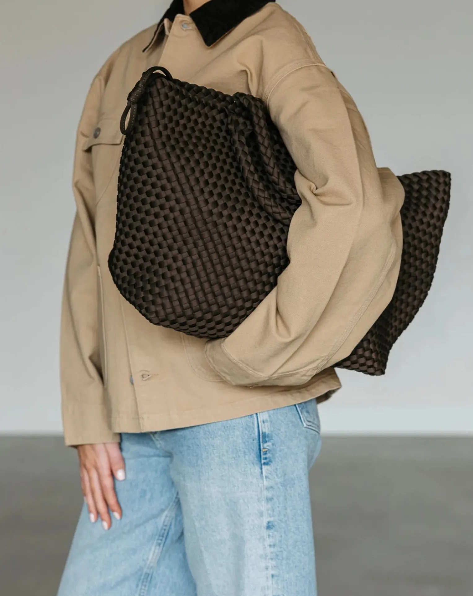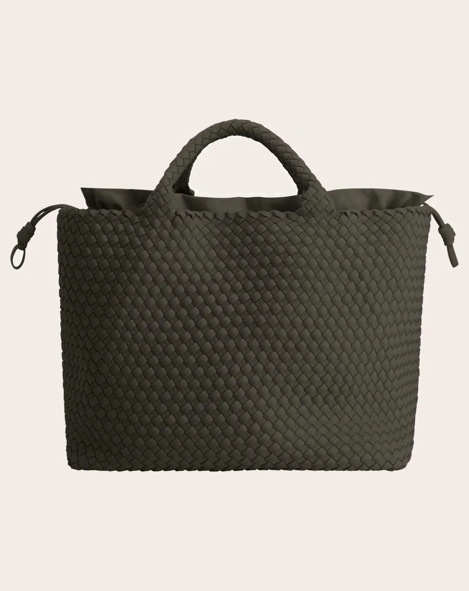 - Tissé à la main en néoprène. 2 poignées supérieures pour le portage à la main, au coude ou à l’épaule. Sac à poussière résistant à l’eau inclus. Matériel de couleur or. Fermeture à crochet + porte-clés. Crochets pour attacher une bandoulière.