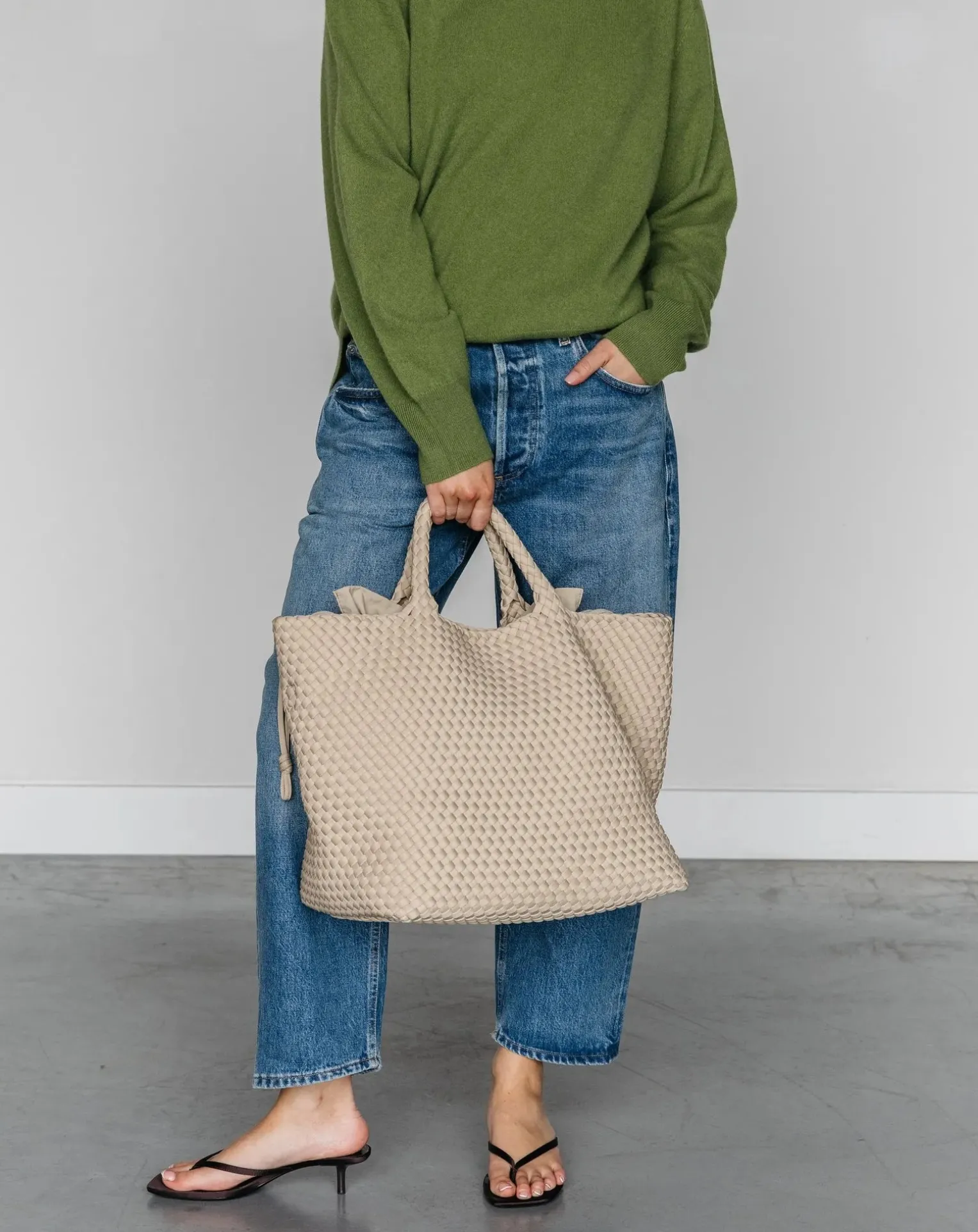 - Spacieux et élégant, le grand sac Marrea est conçu pour ceux qui ont besoin d’espace supplémentaire sans pour autant renoncer à l’élégance. Tissé à la main en néoprène de haute qualité, ce sac est léger, souple et facile à nettoyer, ce qui en fait le choix idéal pour les voyages, les journées à la plage et les escapades du week-end. Là où le sable rencontre la mer, créant une beauté classique et naturelle. Cette couleur dégage un sentiment de détente et de tranquillité, vous invitant à vous détendre et à vous prélasser dans la chaleur du soleil sans le moindre souci. No Tan Lines capture l’essence de l’élégance intemporelle et du look neutre.