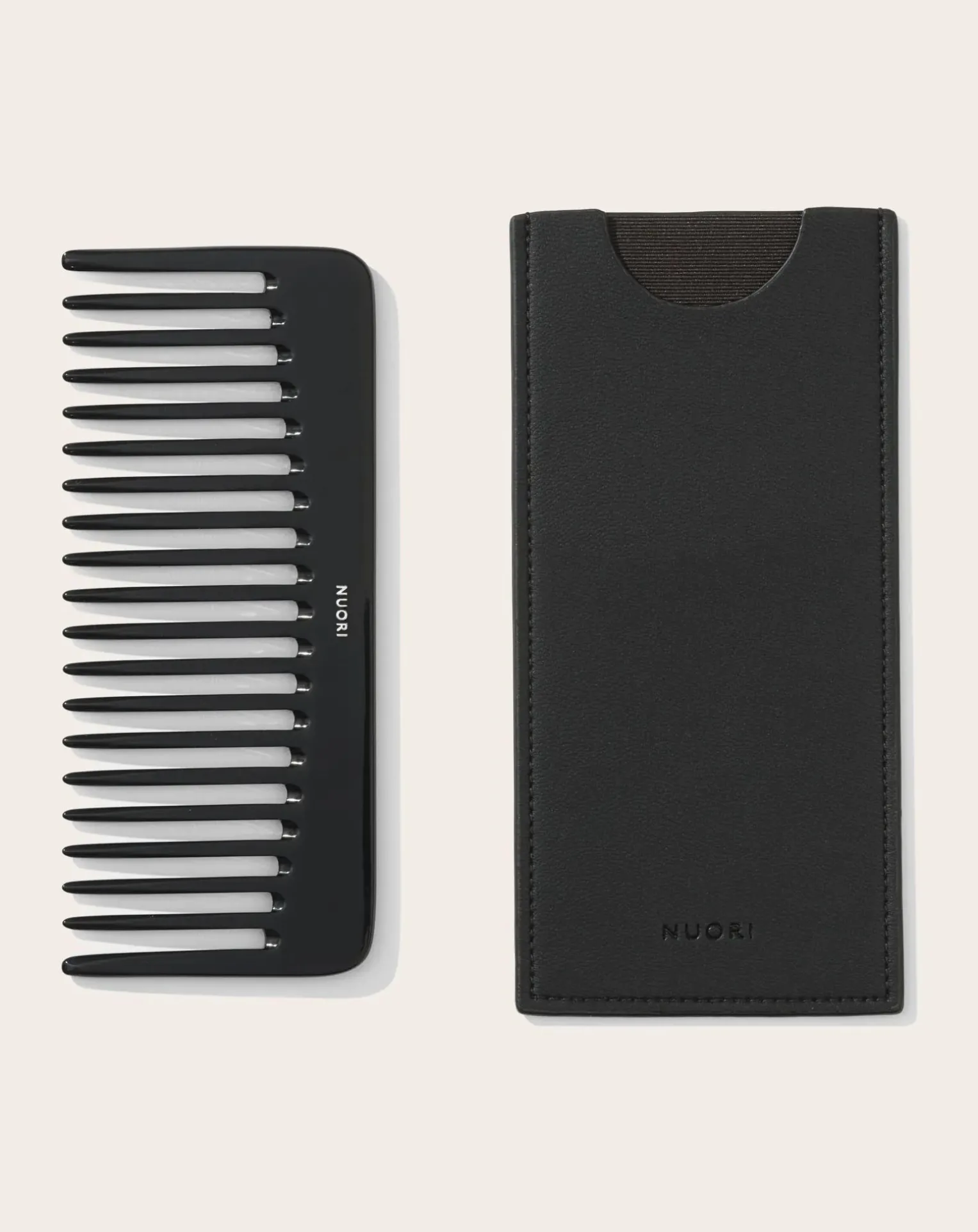 Idéal pour les cheveux épais, bouclés et/ou longs, chaque dent du peigne est soigneusement polie à la main pour protéger les cheveux des frictions et des accrocs, garantissant un résultat lisse et sans nœuds. Peut être utilisé sous la douche avec un après-shampooing pour un démêlage optimal. Fourni avec un étui assorti en cuir vegan.