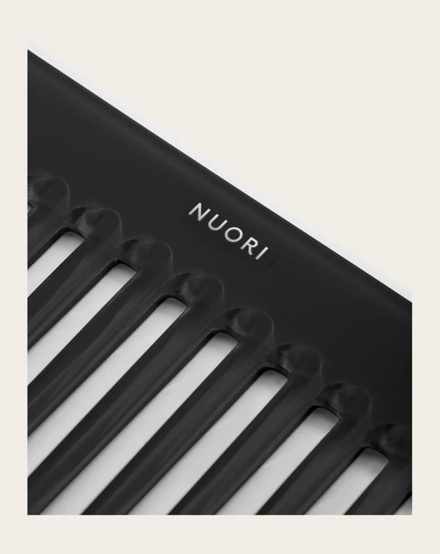 Peigne : Acétate de cellulose biosourcé et biodégradable (fabriqué à partir de pâte de bois certifiée FSC/PEFC et d’une solution plastifiante d’origine végétale).