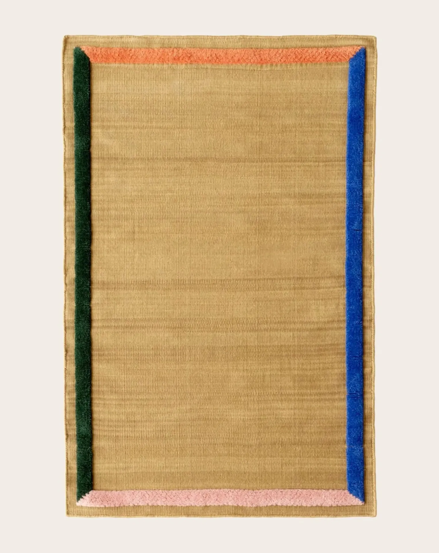 En laine de Nouvelle-Zélande, le tapis Framed apporte des accents de couleur sans dominer la pièce. Fabriqué à partir de deux techniques de tissage, il oppose une bordure vibrante tissée à la main à un centre kilim calme et monochrome.