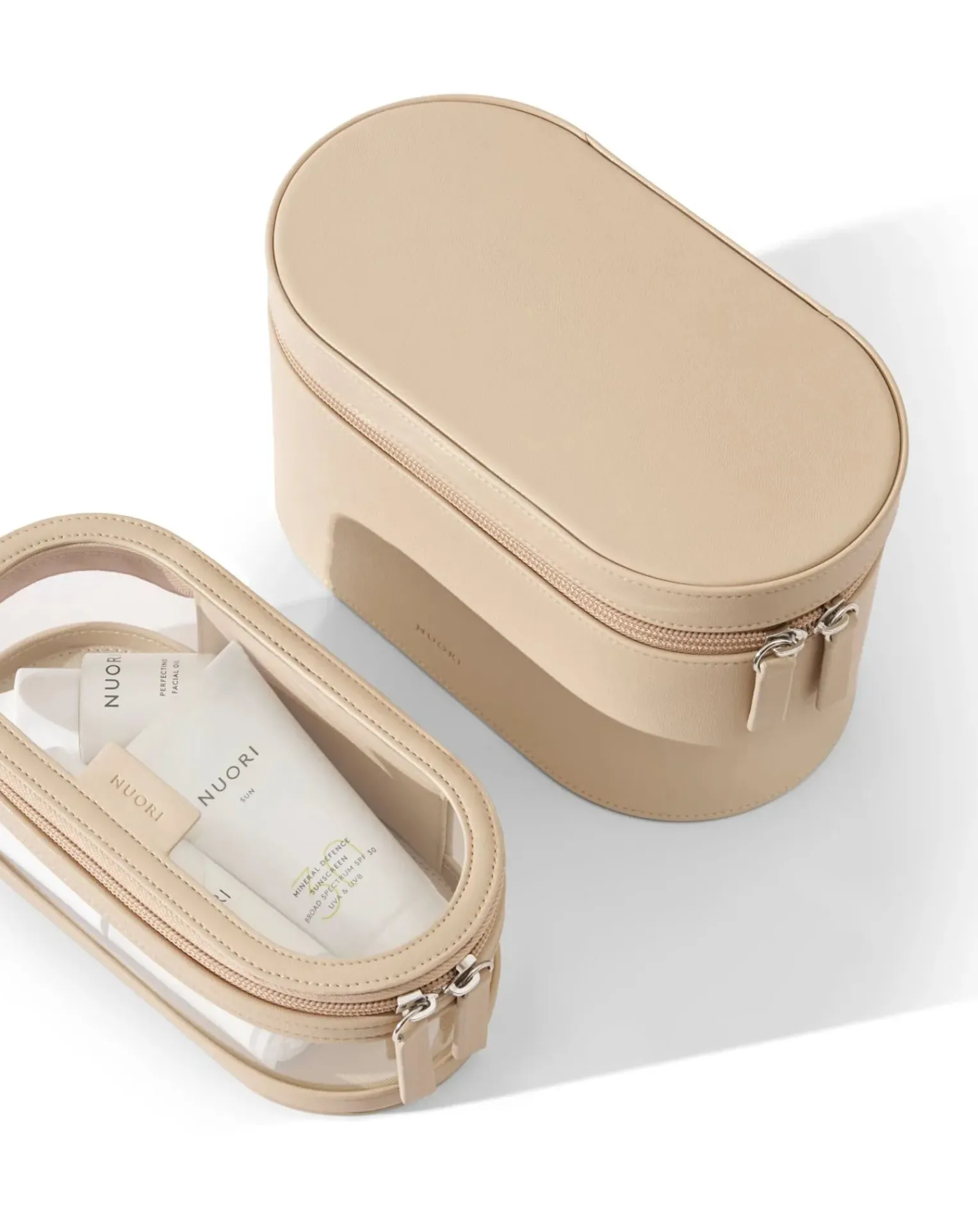 - La grande trousse peut être utilisée comme sac à cosmétiques, tandis que la trousse intérieure sert de récipient à liquides pour les voyages en avion.