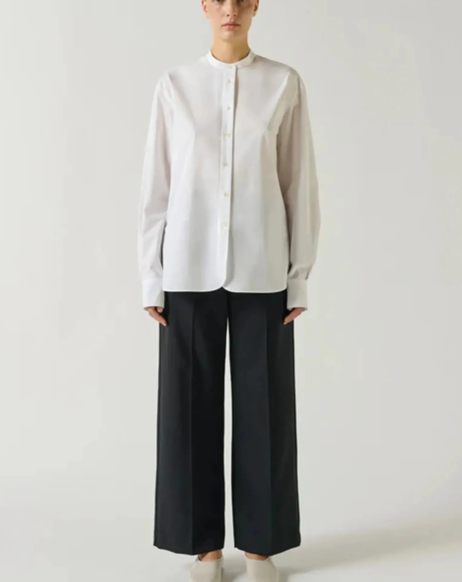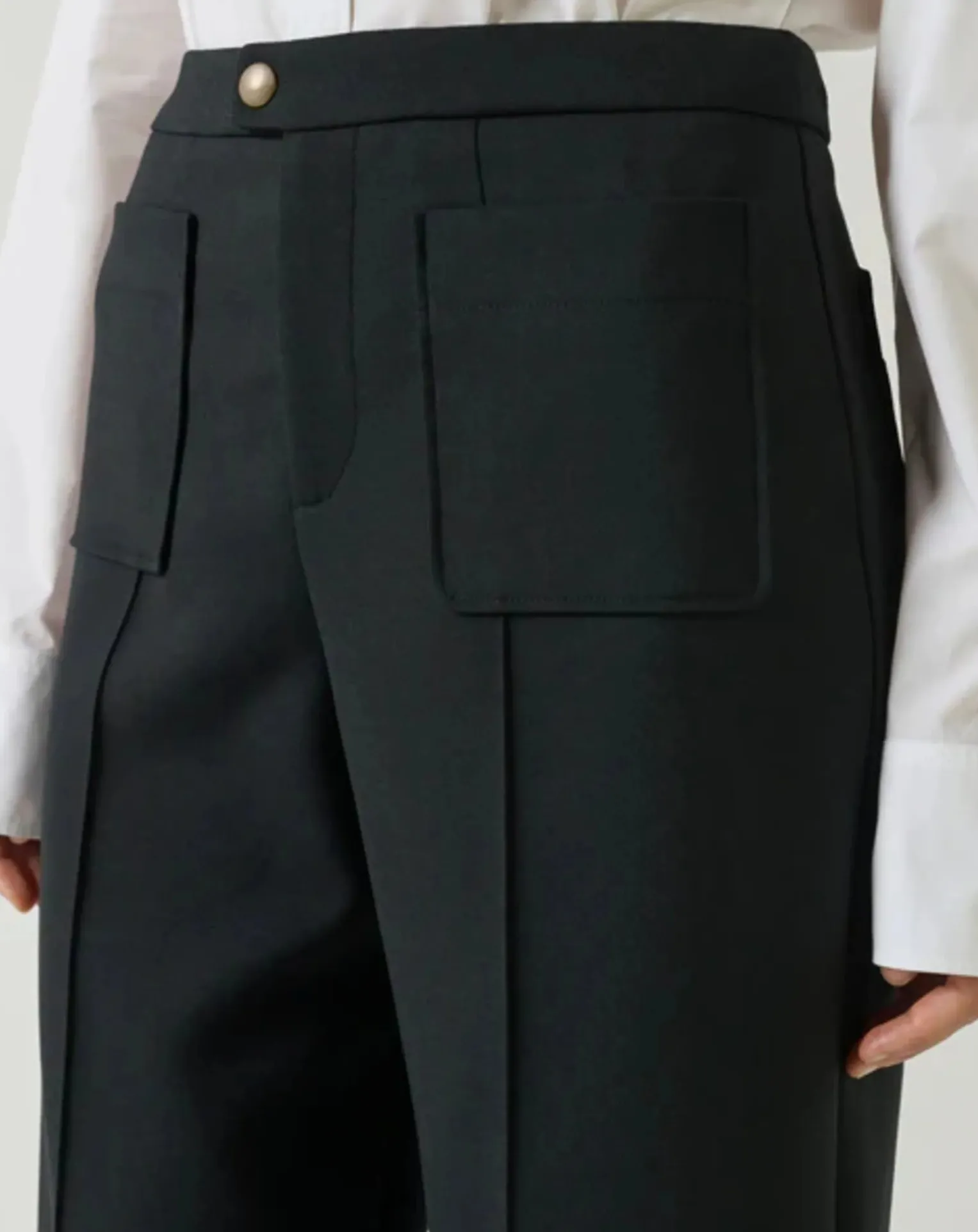 - Pantalon en lainage technique noir- Coupe droite légèrement évasée- Deux poches plaquées devant et dos- Pli marqué le long de la jambe