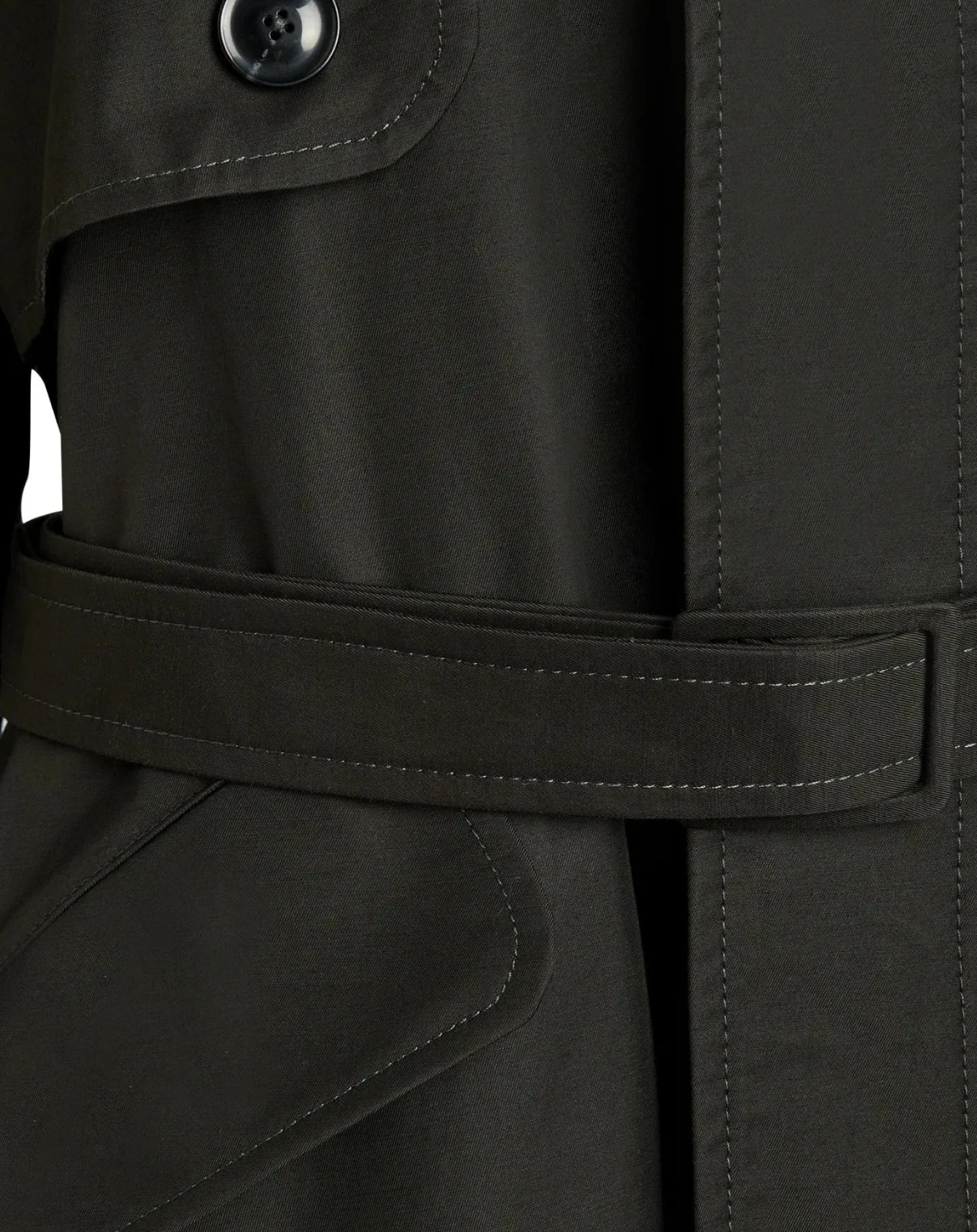 - – Trench long avec bavolets- Coupe large- Boutonnage caché sur le devant- Poches devant- Avec ceinture