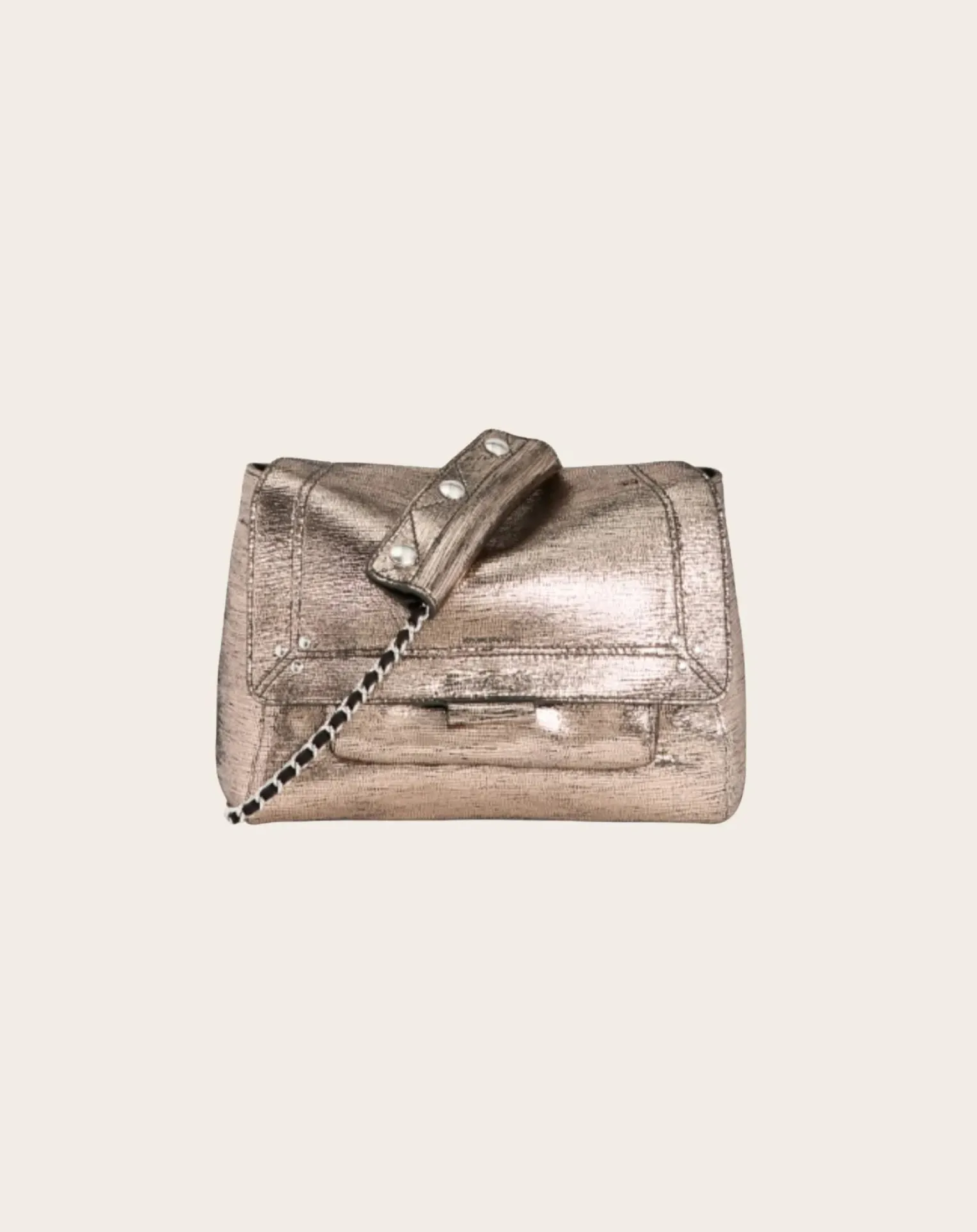 - Sac besace, porté épaule ou croisé. Bandoulière chaîne et cuir, amovible et ajustable. Rabat avec fermeture aimantée.