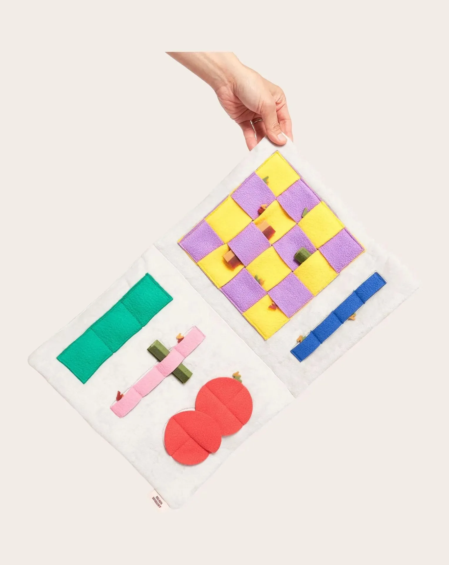 - Cachez les friandises invisibles dans le tapis à carreaux entrelacés. Dimensions 41 cm × 27 cm × 2 cm