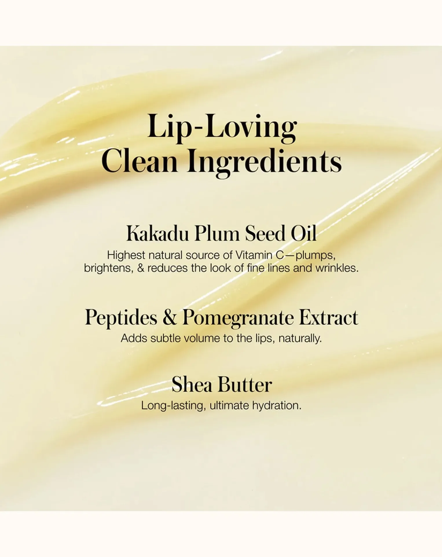 - Infusé de beurres végétaux apaisants, d’huile de graines de prunier de Kakadu riche en vitamine C, de peptides repulpants et d’extrait de grenade, ce masque hydratant fond sur les lèvres en leur apportant une hydratation intense pendant 24 heures, une défense antioxydante et une réparation de la barrière cutanée. Au réveil, les lèvres sont visiblement plus douces, plus lisses et d’apparence plus saine.