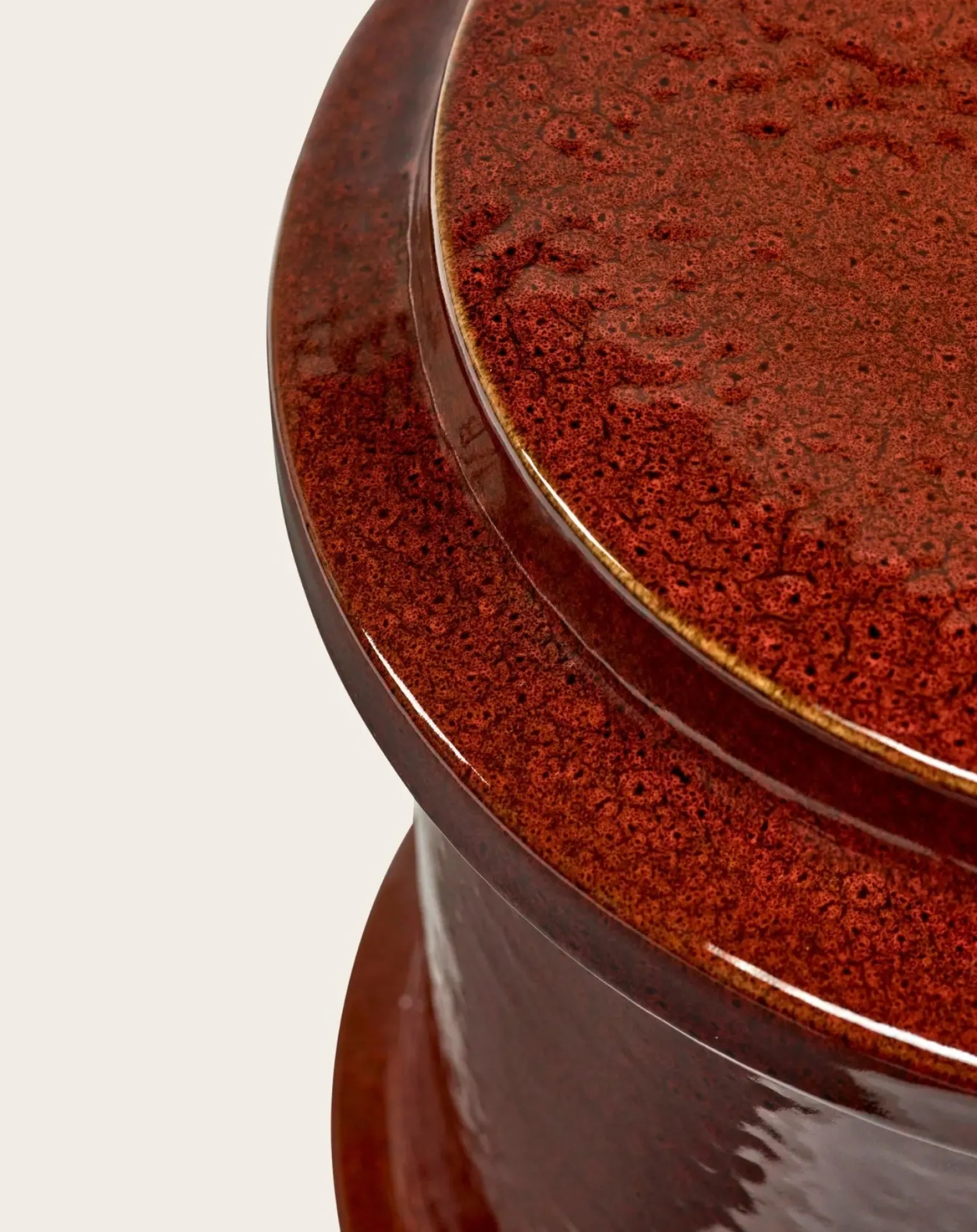 Au fil des ans, les tabourets Pawn sont devenus des objets polyvalents déclinés dans des formes géométriques colorées et des matériaux variés. Depuis peu, la préférence de Marie s’oriente vers le grès émaillé, avec des couleurs riches et profondes en guise de touche finale. L’ajout de rainures horizontales ou verticales rend ces Pawn esthétiquement intéressants tout en offrant une prise pour déplacer facilement les tabourets.