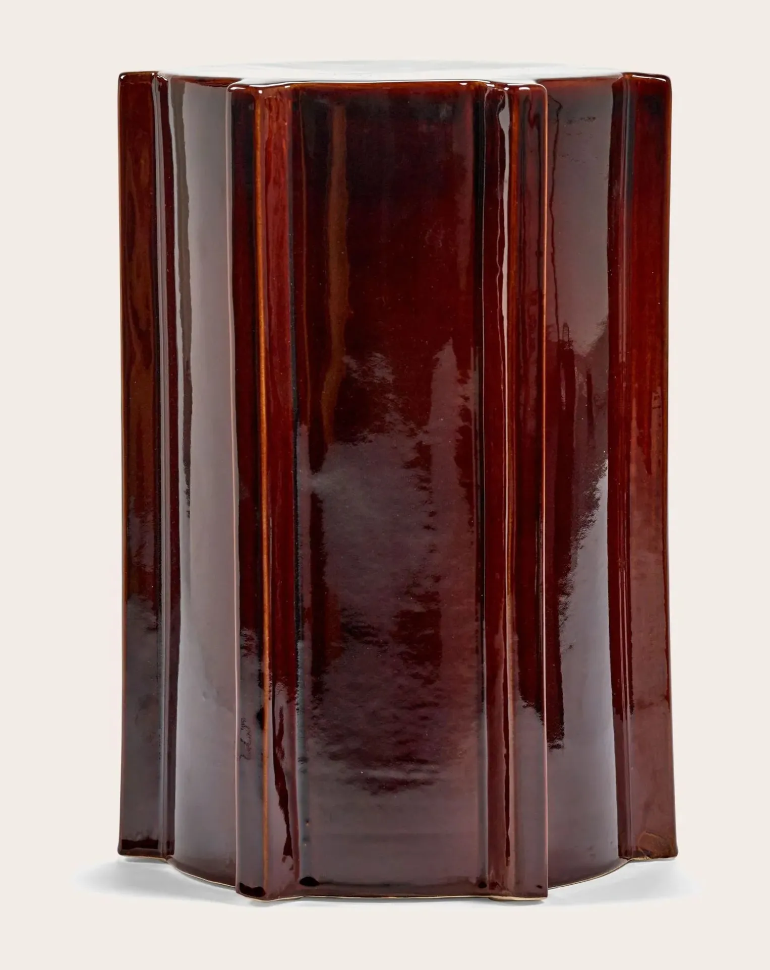 Au fil des ans, les tabourets Pawn sont devenus des objets polyvalents déclinés dans des formes géométriques colorées et des matériaux variés. Depuis peu, la préférence de Marie s’oriente vers le grès émaillé, avec des couleurs riches et profondes en guise de touche finale. L’ajout de rainures horizontales ou verticales rend ces Pawn esthétiquement intéressants tout en offrant une prise pour déplacer facilement les tabourets.