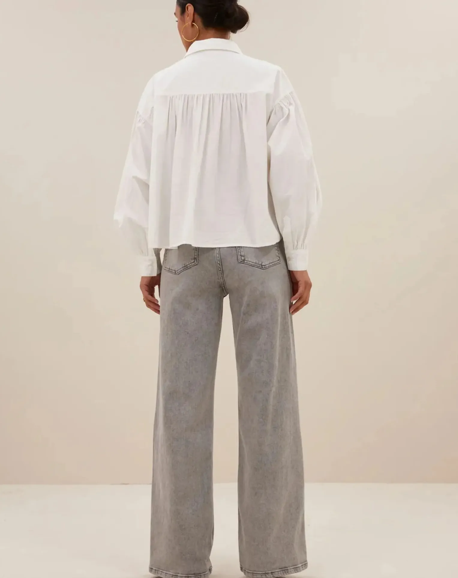 - Du coton, des plis, des manches ballon et un beau col. Le chemisier en popeline Sarah est le chemisier idéal pour une tenue habillée. Le chemisier est doté d’un col et de longues manches plissées, se ferme par un bouton et est fabriqué en 100 % coton. Remarque : ce chemisier est surdimensionné, ce qui lui confère une allure décontractée.