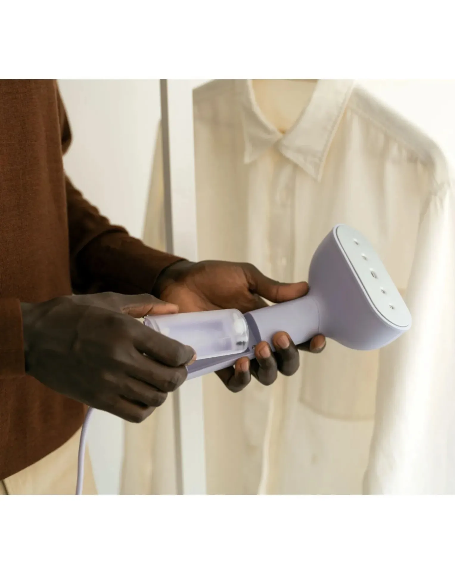 Le défroissage à la vapeur est la manière la plus douce d’enlever les faux plis de vos vêtements et textiles. La vapeur, en soulevant les fibres textiles plutôt que de les comprimer, leur permet de retrouver leur forme naturelle, tout en réduisant les odeurs indésirables et les bactéries. Vos vêtements sont rafraîchis. Avec un défroisseur vapeur, pas besoin d’utiliser une planche à repasser. Accrochez votre vêtement sur un cintre et défroissez à l’aide de la vapeur. Pressez doucement votre Cirrus X Handheld Steamer contre le tissu et appuyez sur le bouton vapeur pour libérer la vapeur.